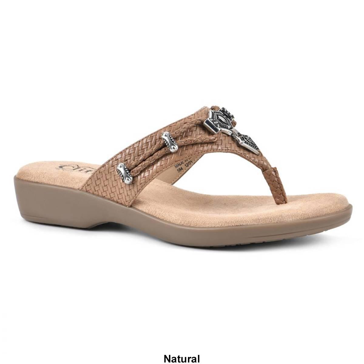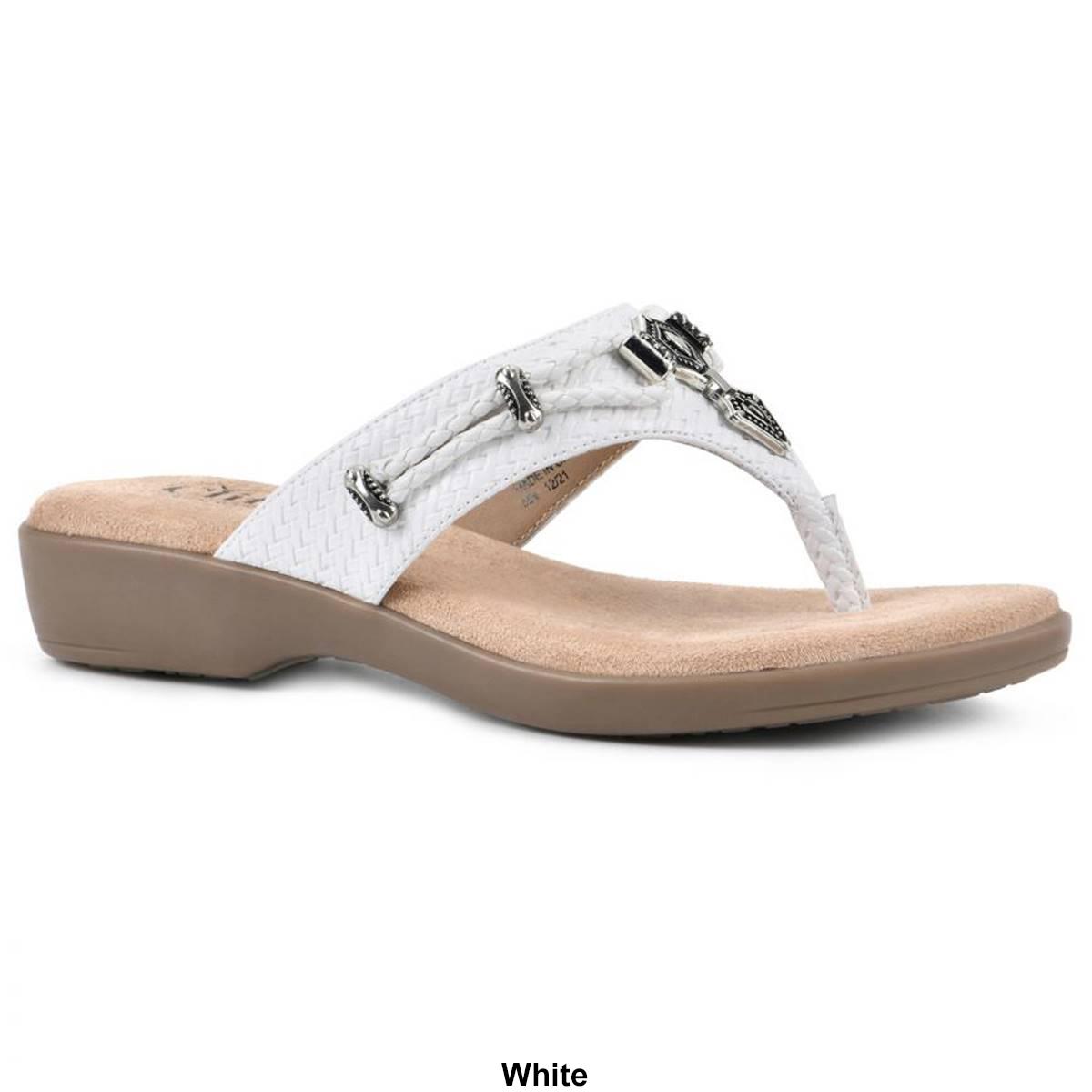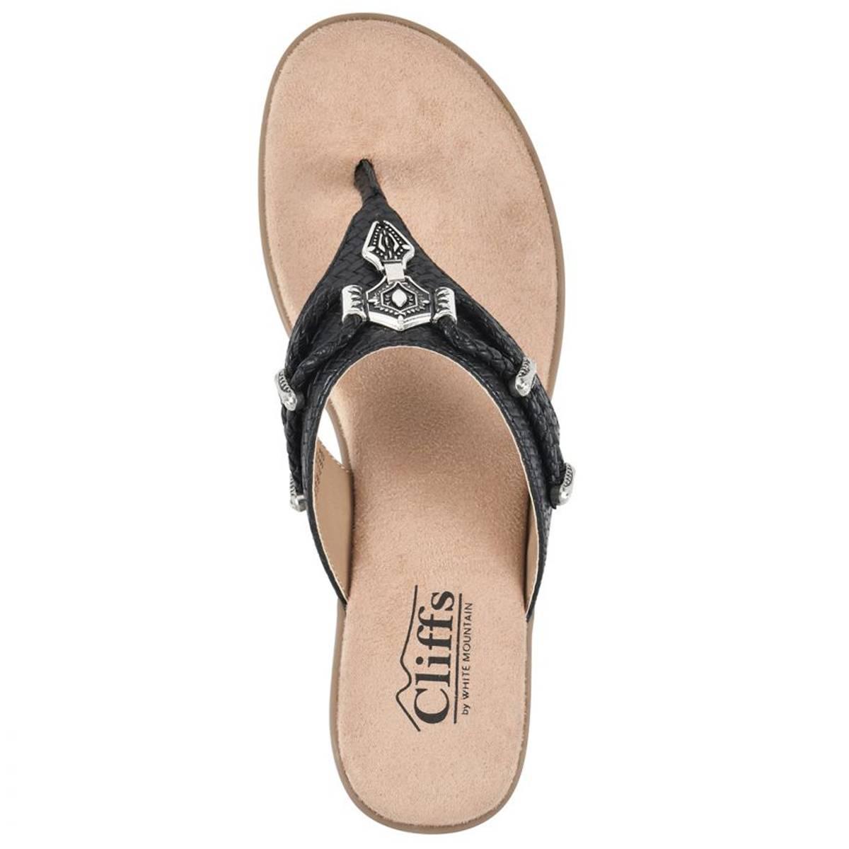 Description Enjoy all day comfort in the Womens Cliffs by White Mountain Bailee thong sandals. Western-influenced embellishments adorn a plush foam footbed making these the...