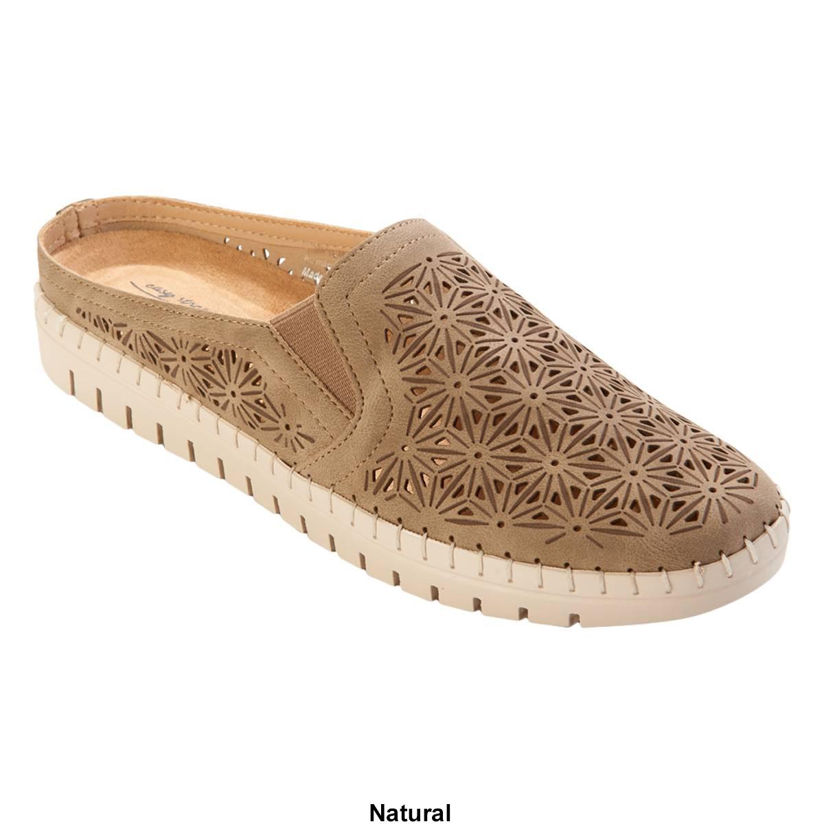 Enjoy the flexible feel of the Womens Easy Street Adore mules. This lightweight shoe has a cushioned insole and an open back to easily be slid into.