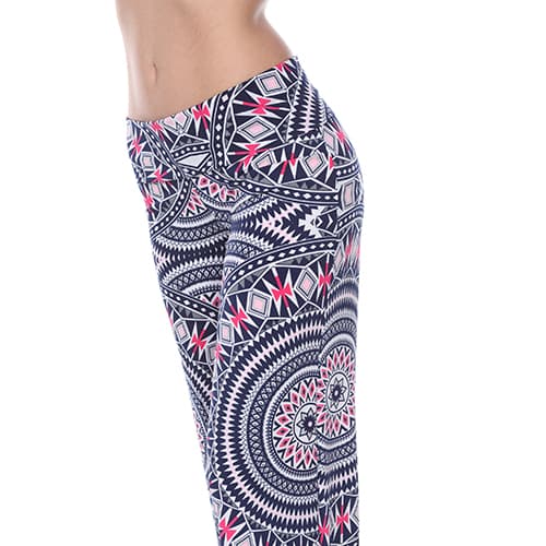 Amp up your wardrobe with these popular Womens White Mark wide-legged geometric print palazzo pants. You´ll feel comfortable and relaxed, yet well-dressed for any occasion. Made with premium quality stretchy knit. 95% Polyester. 5% Spandex. Hand wash, hang dry.