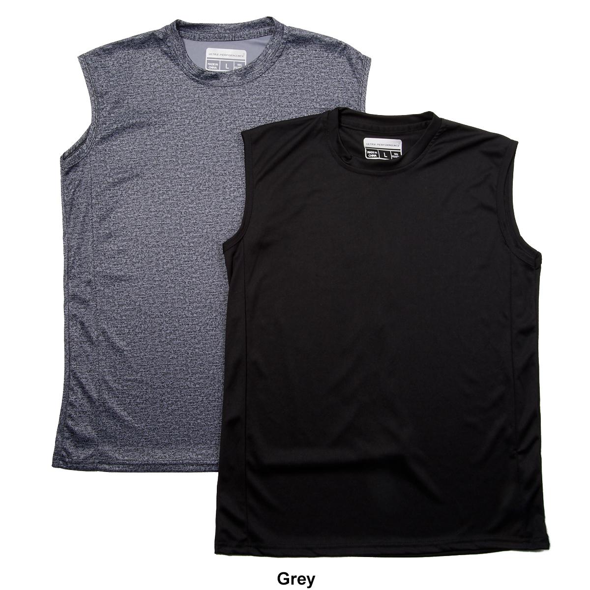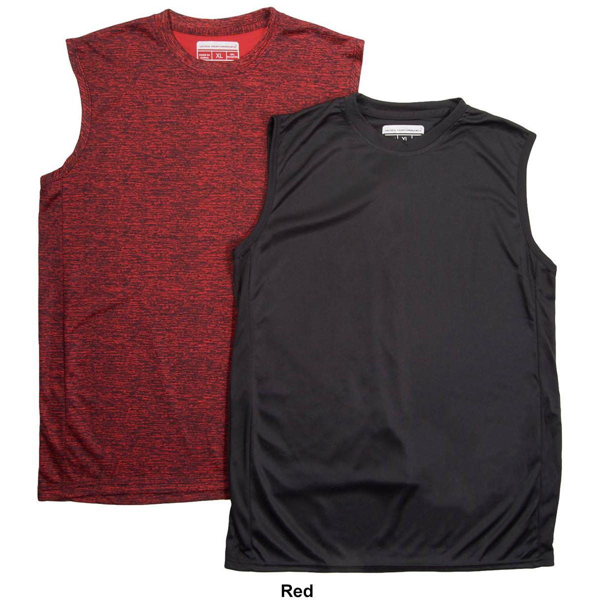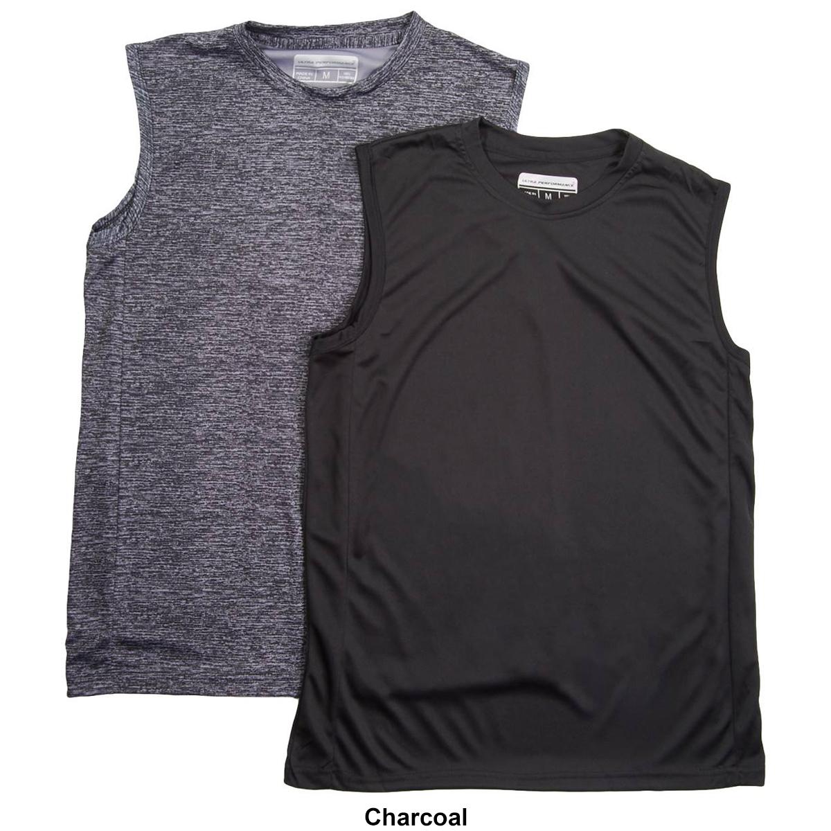 Description Revamp your activewear with this Mens Ultra Performance 2-pack of marled and solid muscle t-shirts. Tee 1: sleeveless, crew neckline, marled printTee 2: sleeveless,...