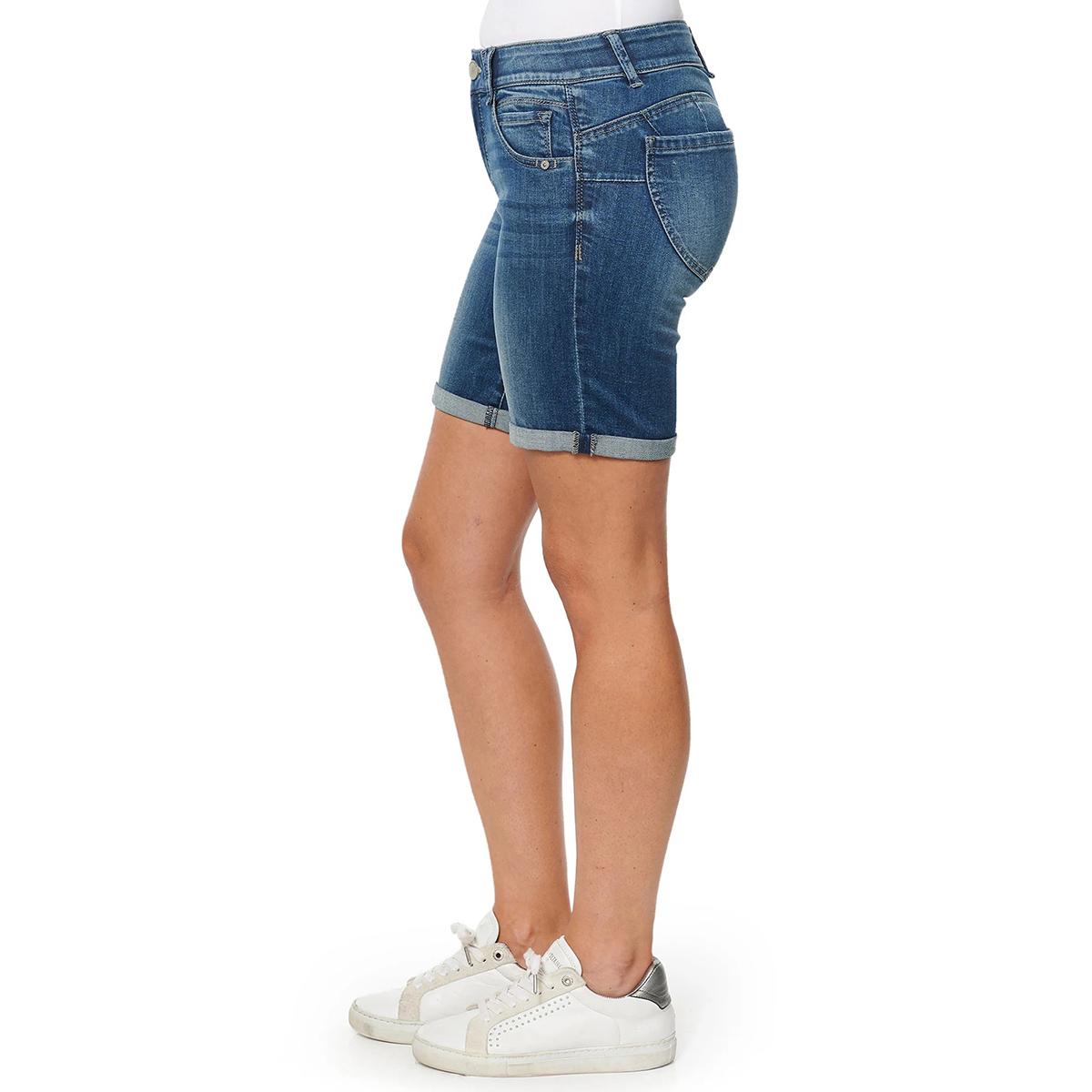 These Womens Democracy "Ab"solution® seven-inch long shorts in a classic true blue wash will quickly become your sunny weather pair with everything bottoms! Featuring an adjustable roll cuff so you can wear these cuffed or uncuffed at the hem and fit technology that molds, holds, and "boost your assets."