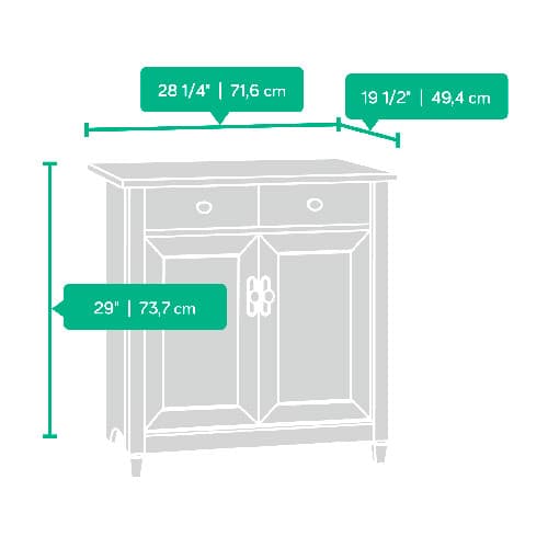 Sauder Edge Water utility stand features a storage drawer with metal runners and safety stops, and hidden storage behind doors with large adjustable shelf. Quick and easy assembly with patented T-lock drawer system. Estate Black Finish. Dimensions: 29"H x 28.25"W x 19.5"D.