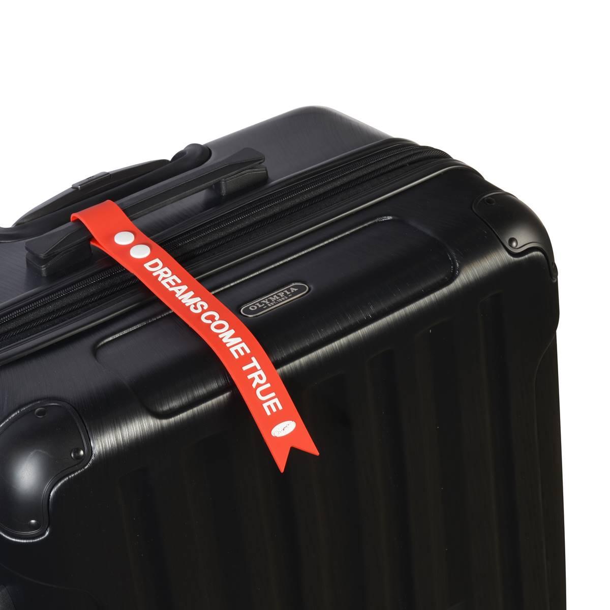 Spot your luggage easier while traveling with this Olympia USA 2-piece luggage tag set. It is made from high-quality PVC and says "Dreams Come True".