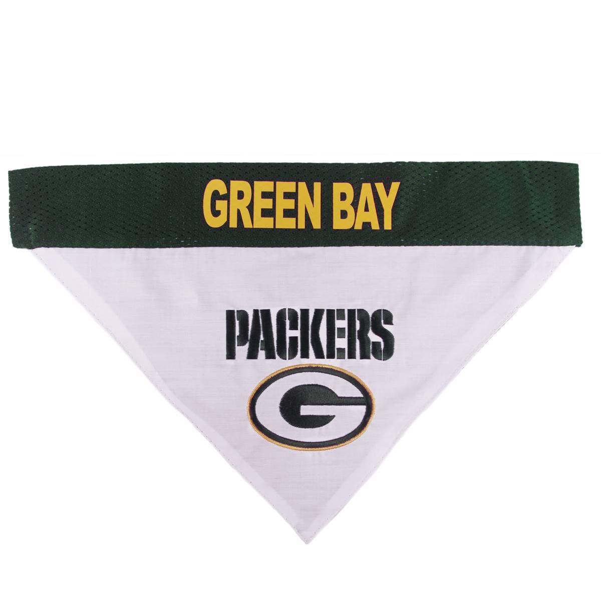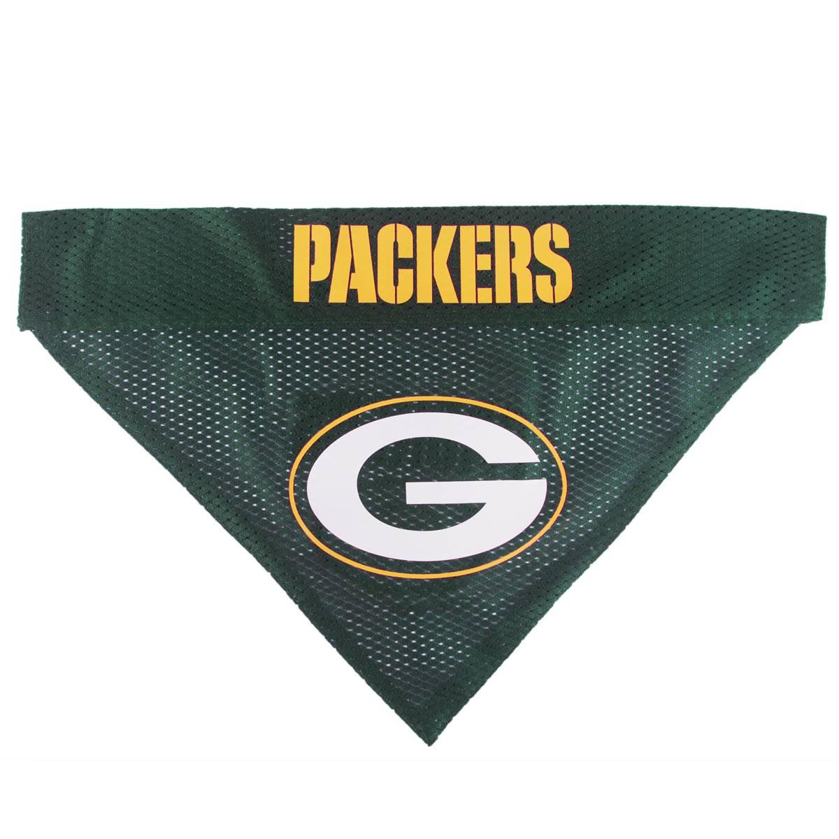 Get your furry buddy in the spirit for game day with this NFL Green Bay Packers Reversible Pet Bandana! The dual-sided accessory features an embroidered team logo on one side and mesh with a screen-printed team name and logo on the other. The openings on either side of the bandana allow you to easily thread your dog’s favorite collar through, so getting ready is a cinch!