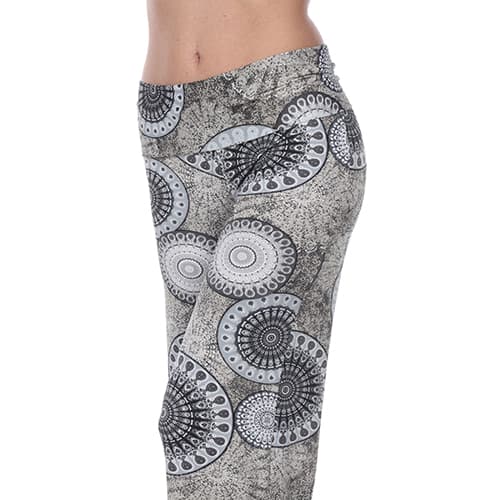 Amp up your wardrobe with these popular Womens White Mark wide-legged circle print palazzo pants. You´ll feel comfortable and relaxed, yet well-dressed for any occasion. Made with premium quality stretchy knit. 95% Polyester. 5% Spandex. Hand wash, hang dry.