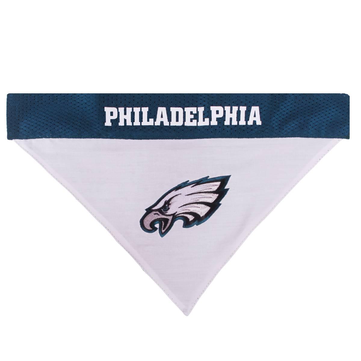 Get your furry buddy in the spirit for game day with this NFL Philadelphia Eagles Reversible Pet Bandana! The dual-sided accessory features an embroidered team logo on one side and mesh with a screen-printed team name and logo on the other. The openings on either side of the bandana allow you to easily thread your dog’s favorite collar through, so getting ready is a cinch!