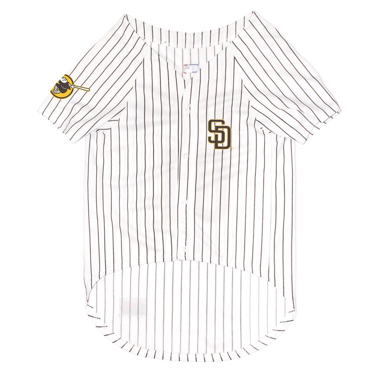 Who’s your all-star pet? It will be clear when your furry friend dons their very own MLB San Diego Padres Pet Jersey. Designed with durable satin and mesh jersey materials, this unique uniform features a screen-printed name and number on the back and a logo on the front in vibrant team colors. Print your canine companion’s name on the woven jock tag for the ultimate personalization.