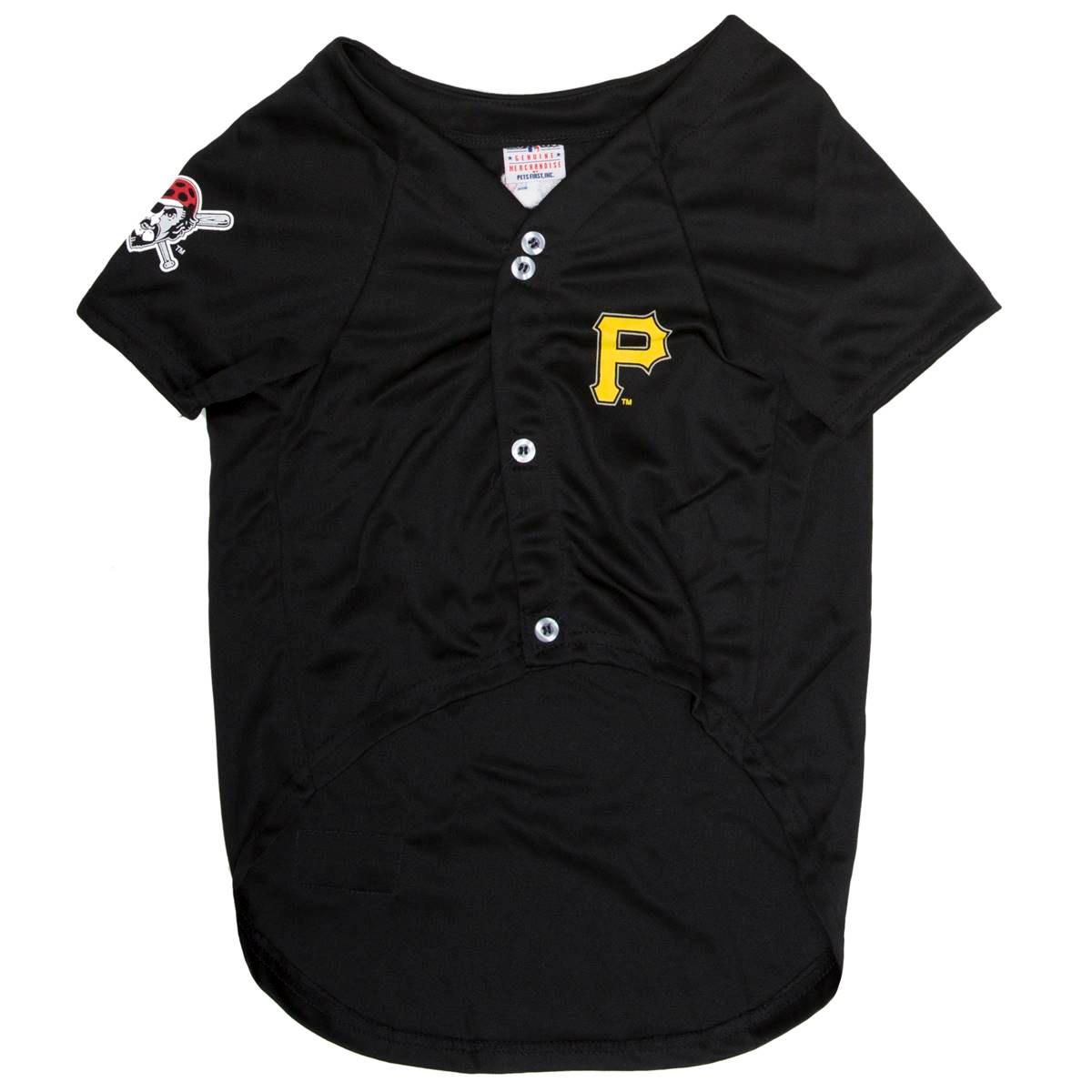 Who’s your all-star pet? It will be clear when your furry friend dons their very own MLB Pittsburgh Pirates Pet Jersey. Designed with durable satin and mesh jersey materials, this unique uniform features a screen-printed name and number on the back and a logo on the front in vibrant team colors. Print your canine companion’s name on the woven jock tag for the ultimate personalization.