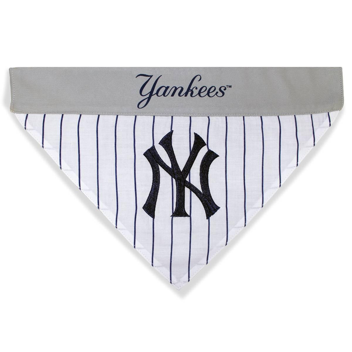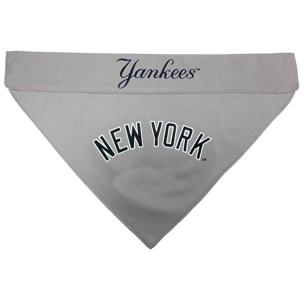 Get your furry baseball buddy in the spirit for game day with this MLB New York Yankees reversible pet bandana! The dual-sided accessory features an embroidered team logo on one side and a screen-printed team name and logo on the other, offering two home run worthy looks. The openings on either side of the bandana, allow you to easily thread your dog’s favorite collar through, so getting ready is a cinch!