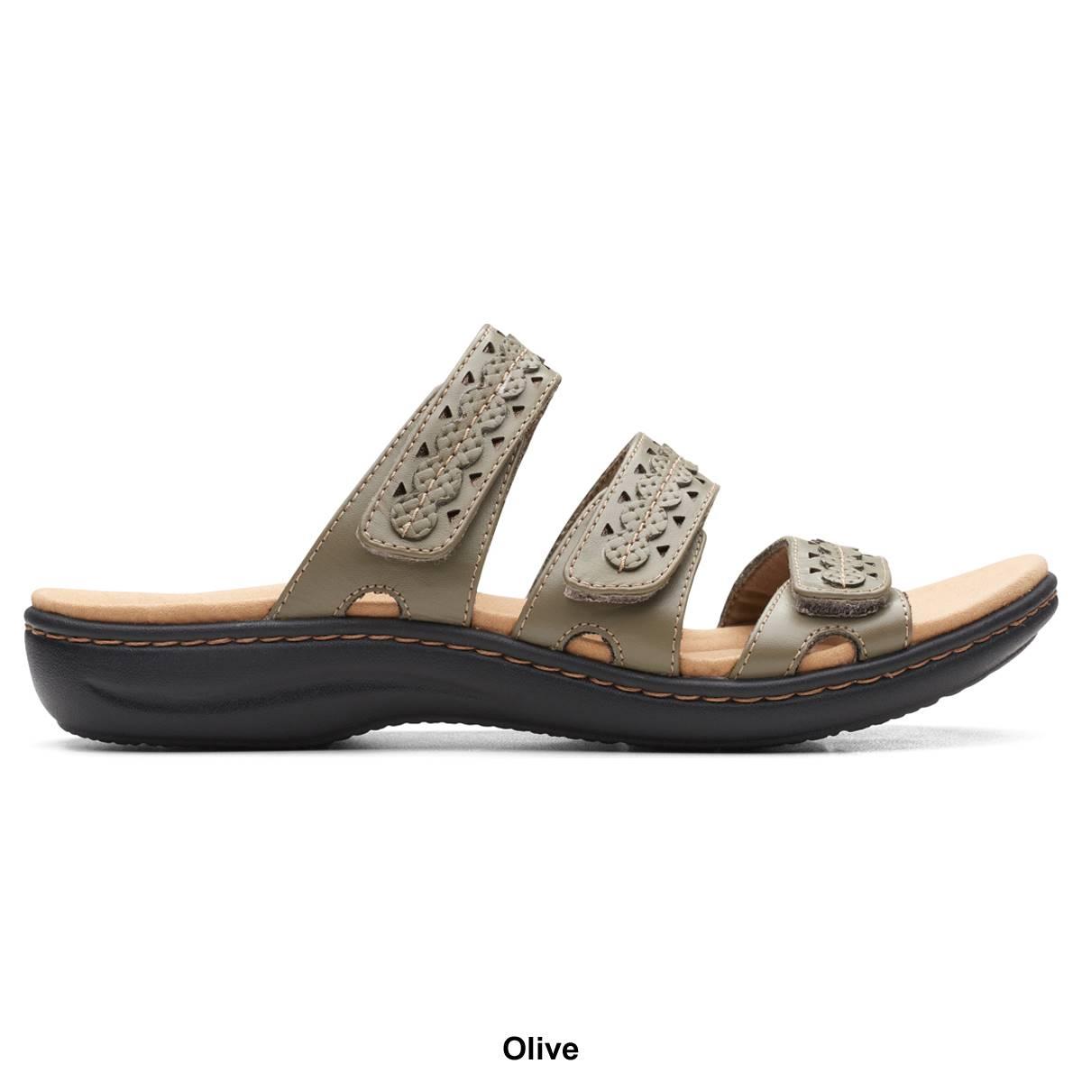 Description These Womens Clarks® Collections Laurieann Cove slide sandals are designed to move naturally with your feet. Features adjustable stitch-detail leather uppers to give...