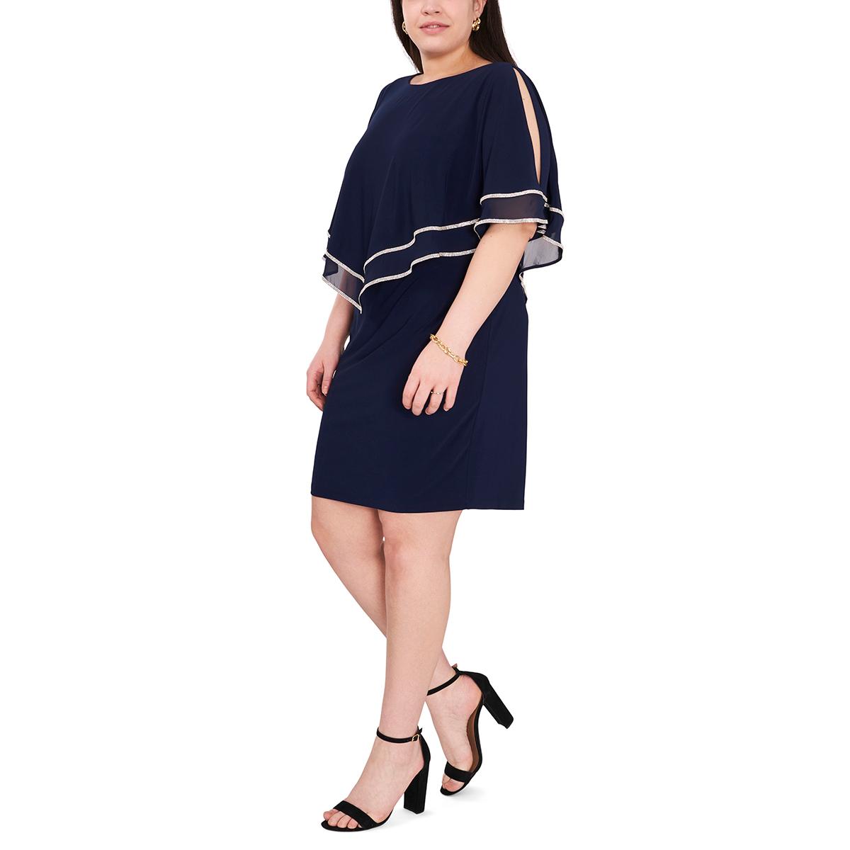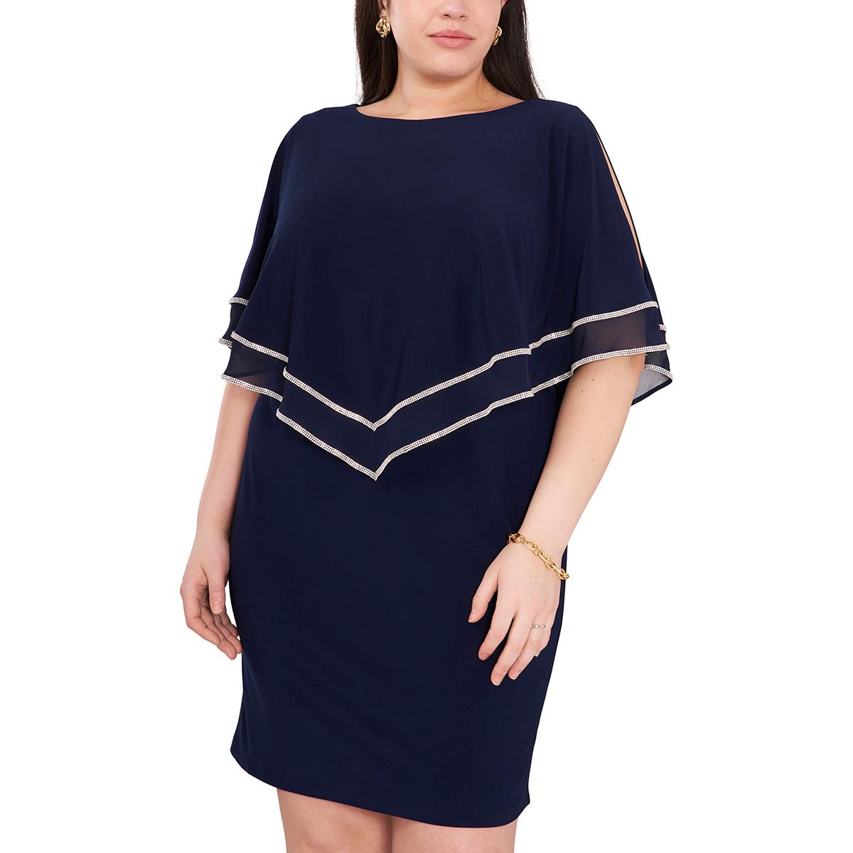 Elevate your casual wardrobe with this Plus Size MSK split sleeve rhinestone trim double overlay dress that includes a crew neckline. Perfect for any special occasion.