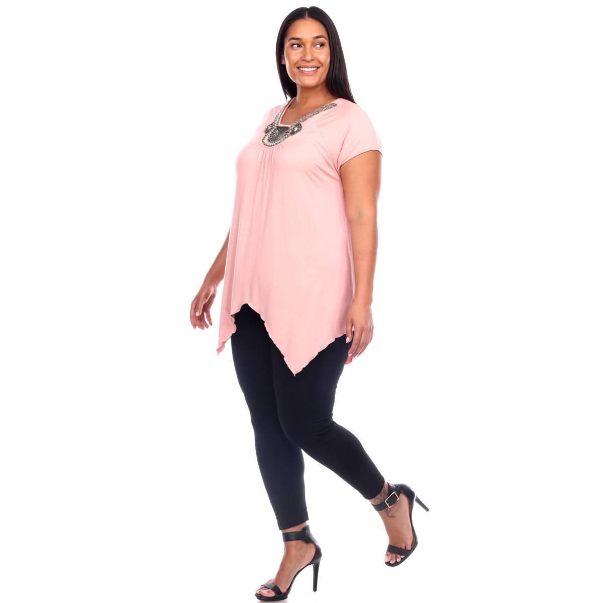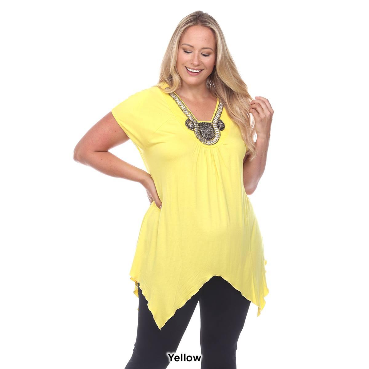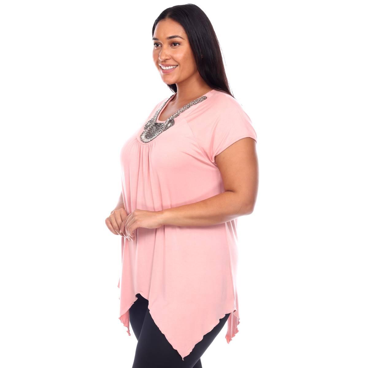 Description Add the right touch to your outfit with this Plus Size White Mark short sleeve fenella tunic. Glimmering embellishments decorate the fashionable v-neck neckline while...