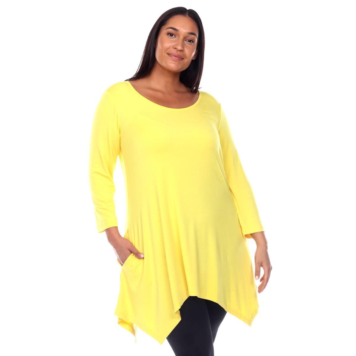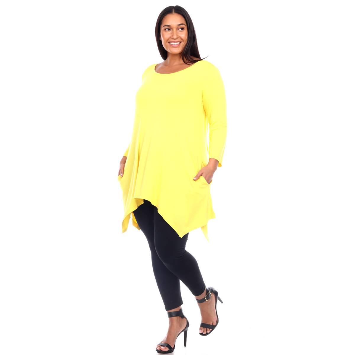 Description This Plus Size White Mark long sleeve tunic drapes stunningly on your body. With side pockets and 3/4 sleeves, you are sure to feel comfortable and look stylish....
