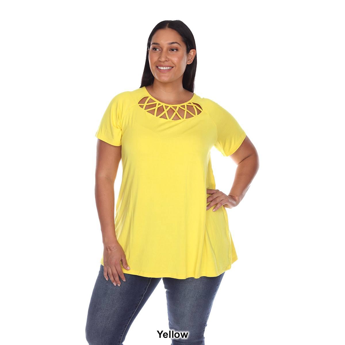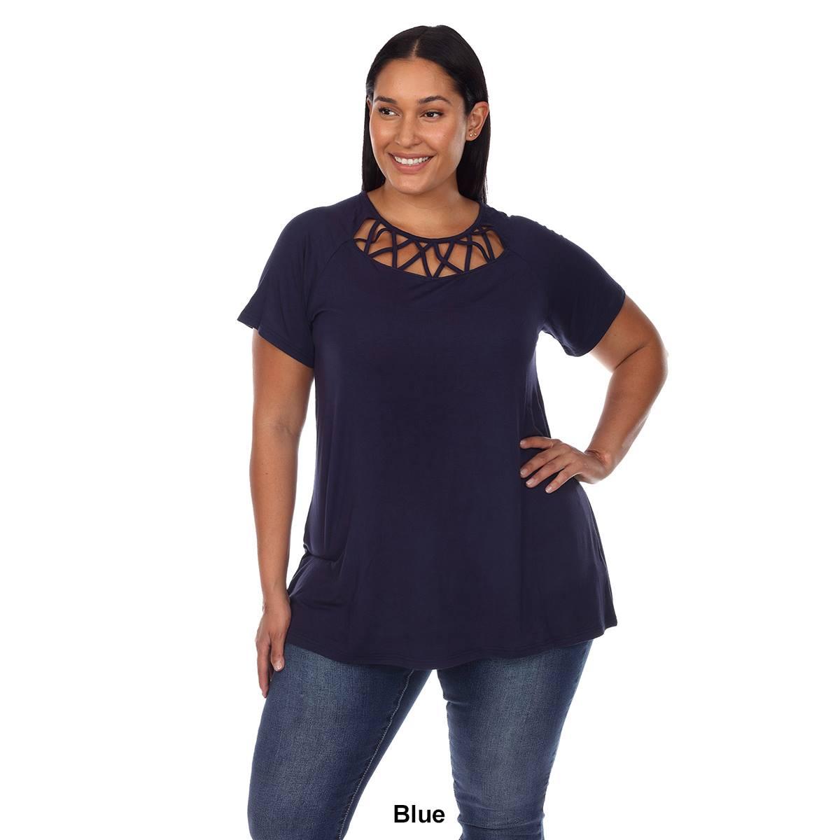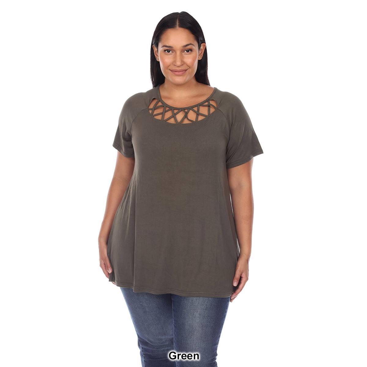 Description This Plus Size White Mark criss cross short sleeve tunic is a must-have for your casual closet. The top features a crisscross cutout round neckline, short sleeves,...