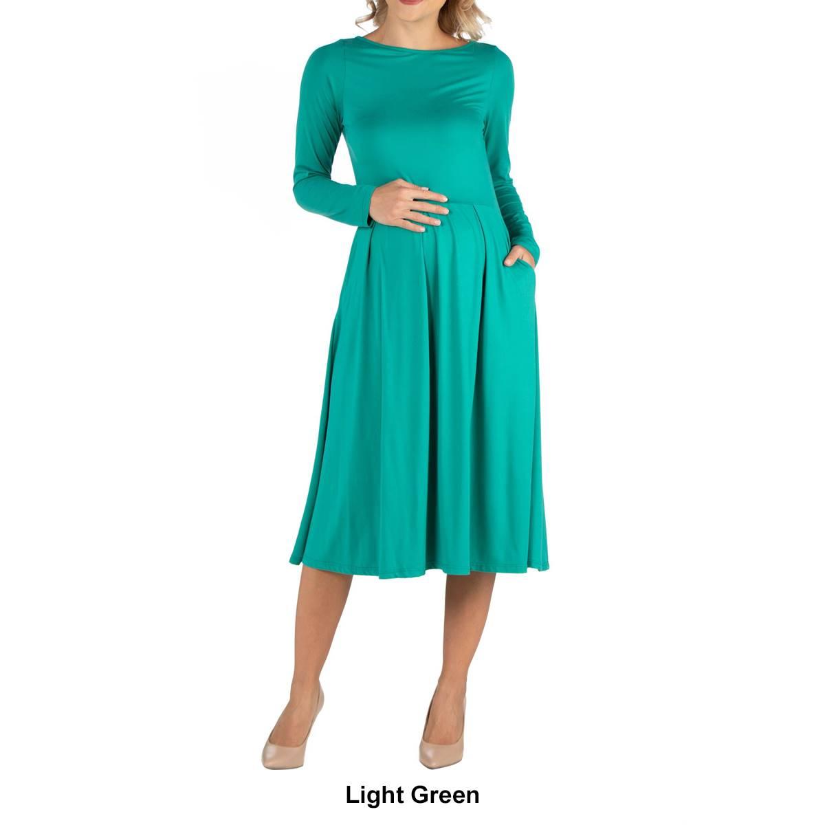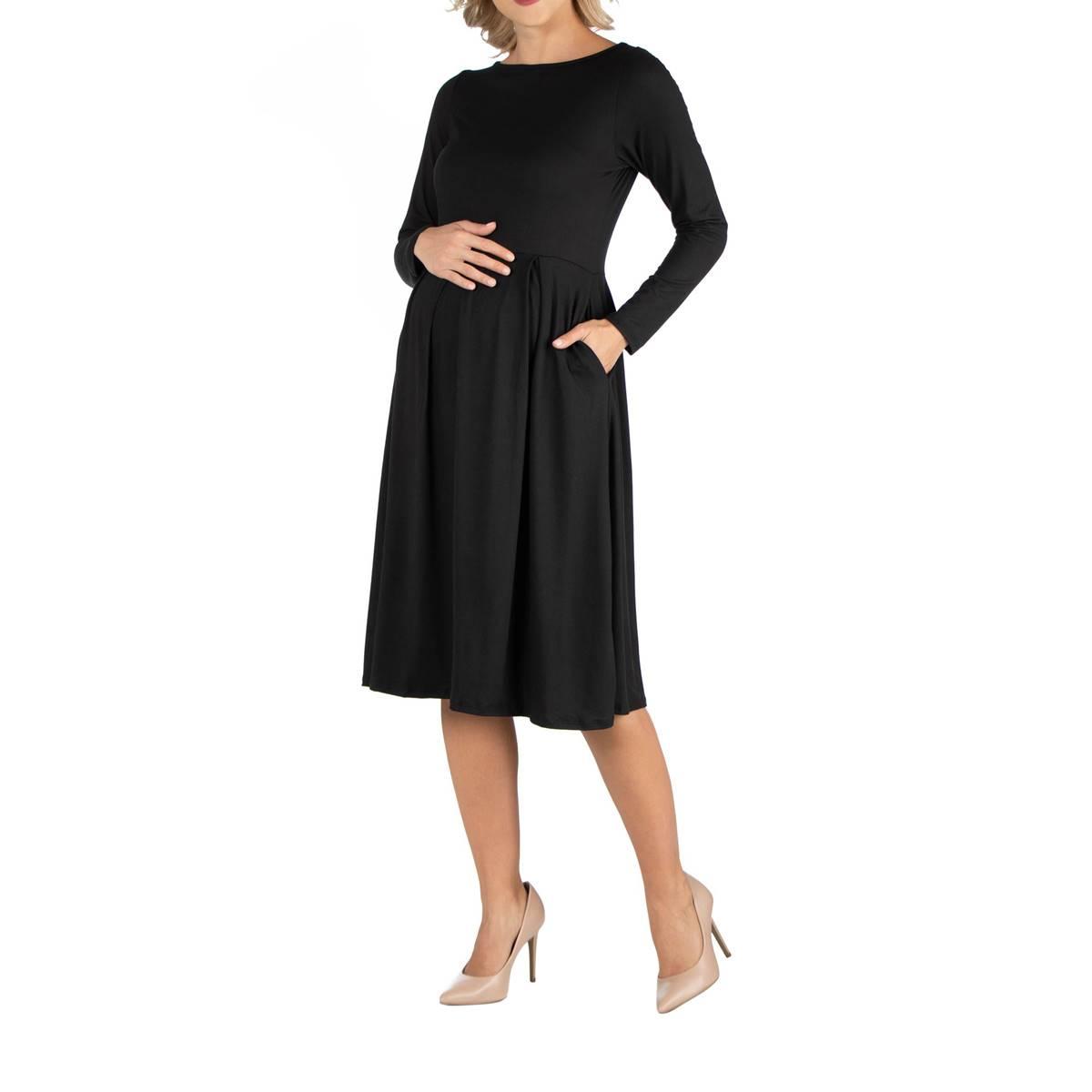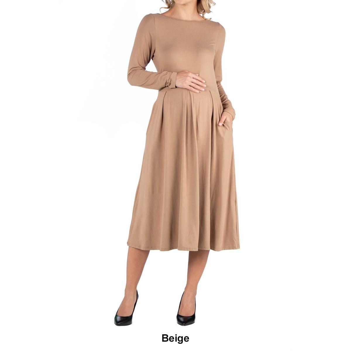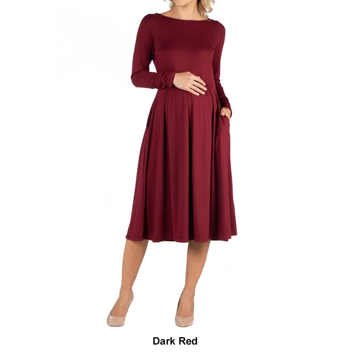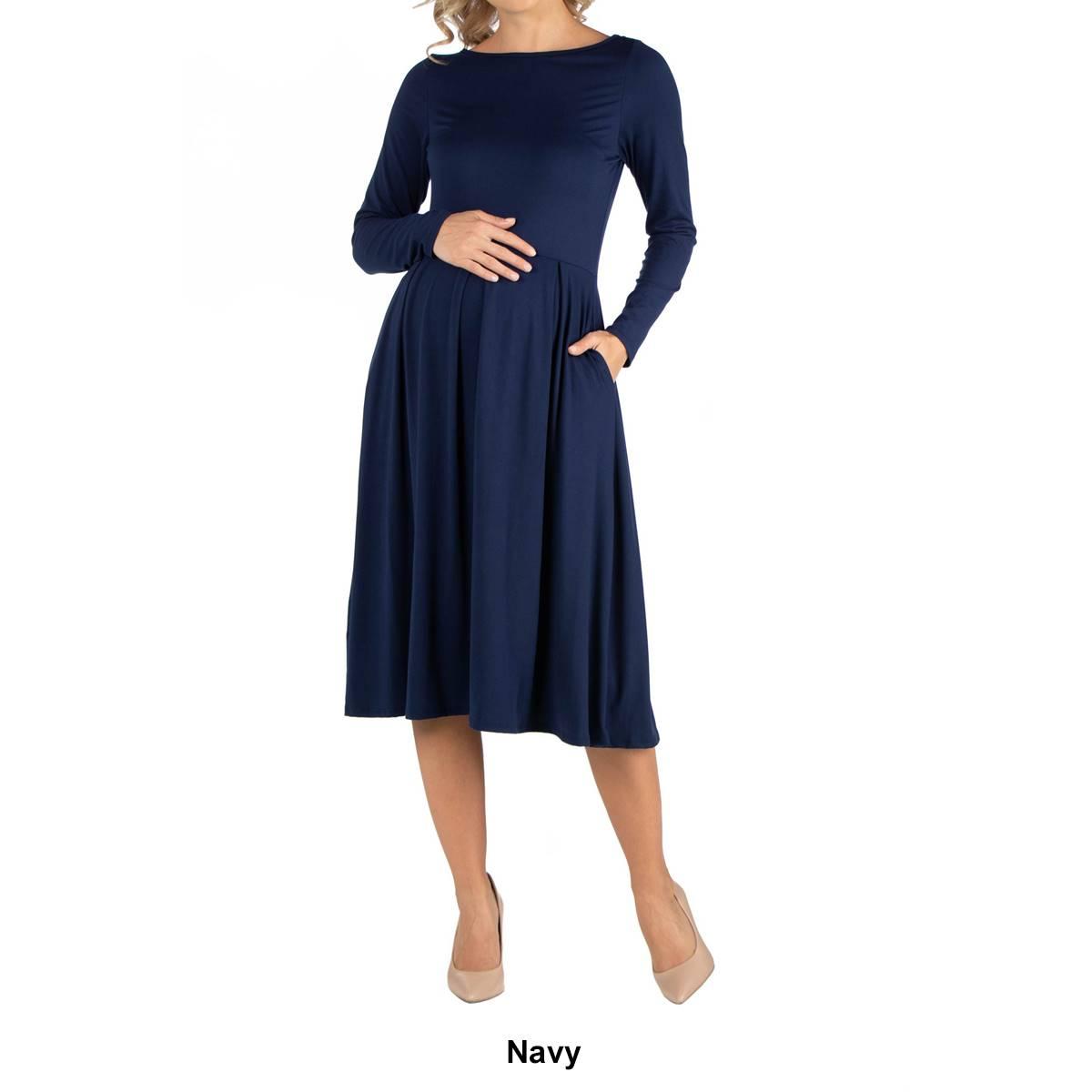 Description This Plus Size 24/7 Comfort Apparel maternity fit and flare midi dress is great for any occasion whether casual or dressy. Featuring a round neckline, long sleeves,...