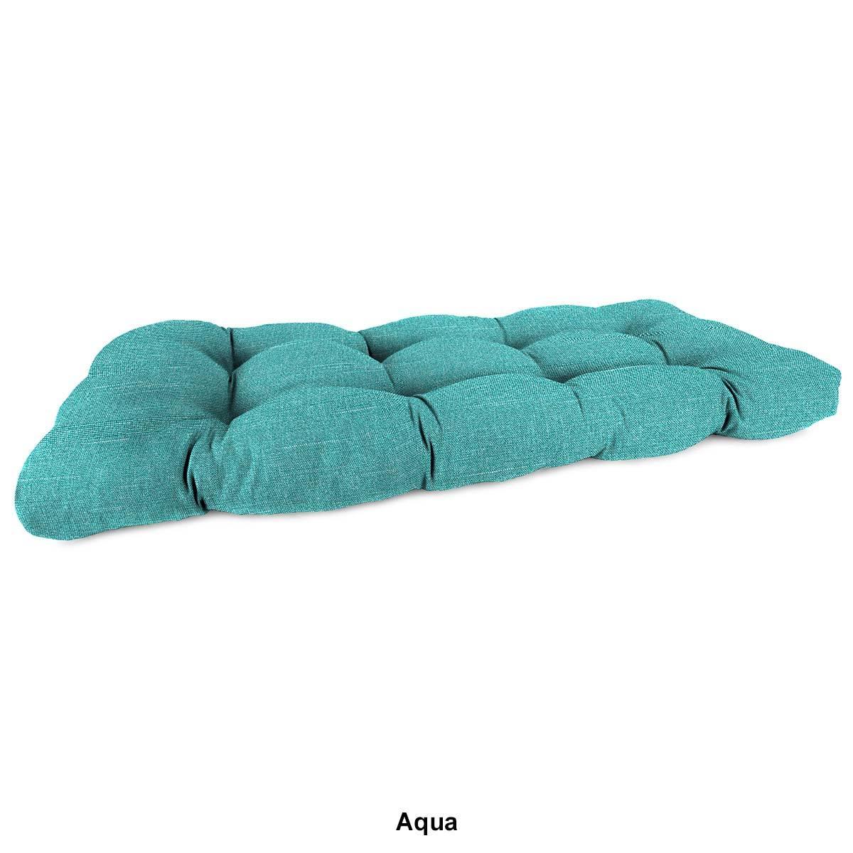 Description Add a touch of class and color to your outdoor seating arrangement with this Jordan Manufacturing Tory Wicker Settee Cushion. It has a French edge and is tufted for...