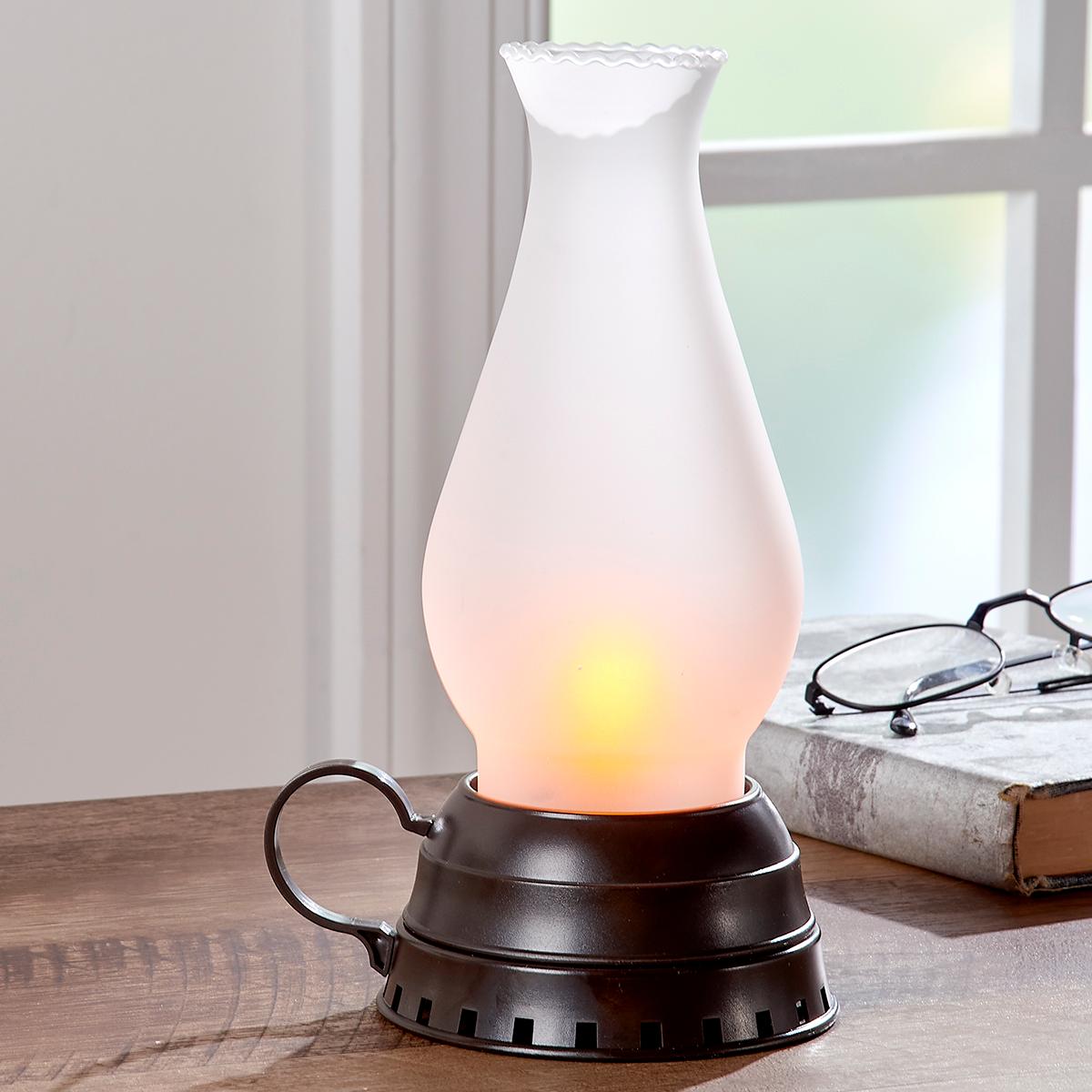 Enjoy a warm, enchanting ambiance indoors and out with this handsome flameless LED glass hurricane lantern. A smart and safe alternative to a candle´s open flame and an easily portable substitute for cumbersome corded fixtures. The lantern´s long-lasting LED bulb casts a realistic "flickering" glow through its beautifully shaped frosted-glass lampshade.