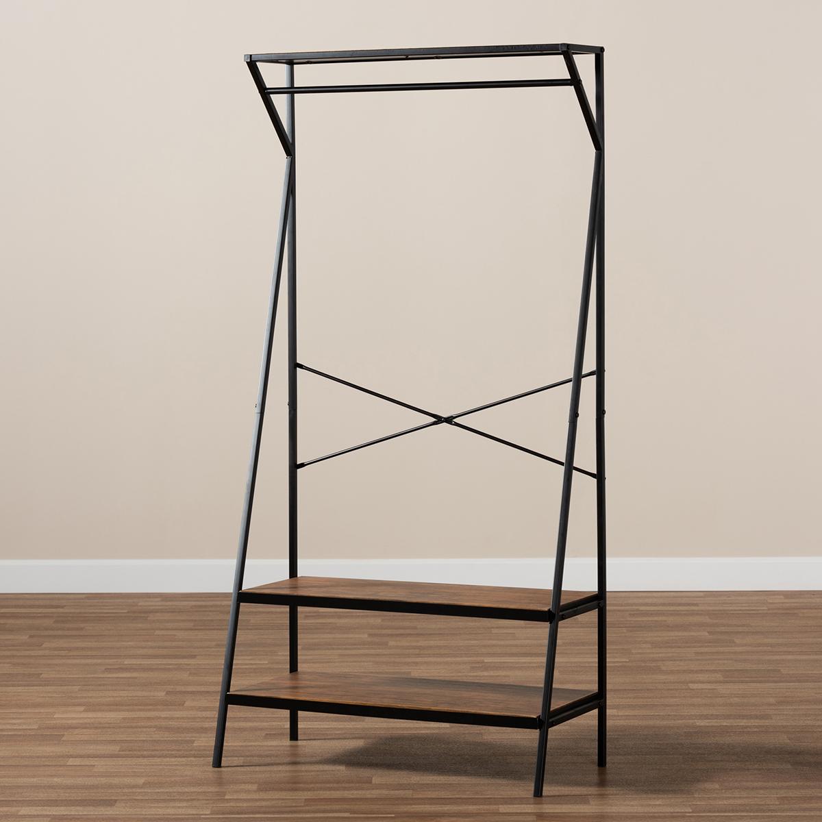 Add rustic style to your entryway with the Baxton Studio Laima coat rack. This versatile piece combines seating and storage into one, making it an ideal option for optimizing your space. A durable black metal frame supports three shelves crafted from distressed wood. Hang coats and scarves on the top bar. Store shoes and bags on three shelves, one of which can also be used as a bench for putting on shoes. Functional and stylish, the Laima features a clean industrial design that will complement any space.