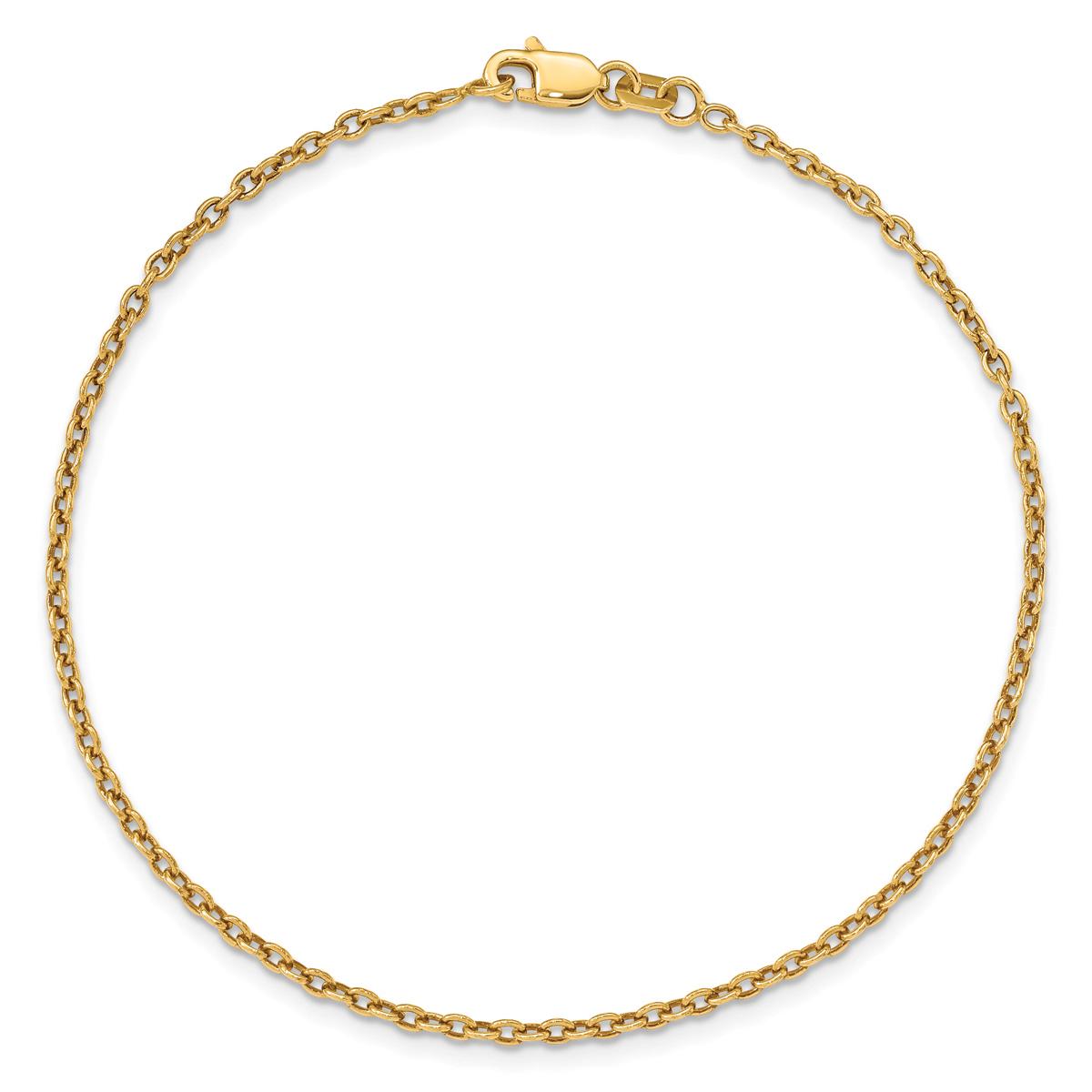 Minimalistic at its best, this Gold Classics™ cable chain anklet is an ideal way to uplift your everyday style. The 1.8mm wide ankle bracelet is made of 14kt. yellow gold with a polished finish for a bright shine. A lobster clasp offers complete protection to this wonderful anklet that is available in various lengths.