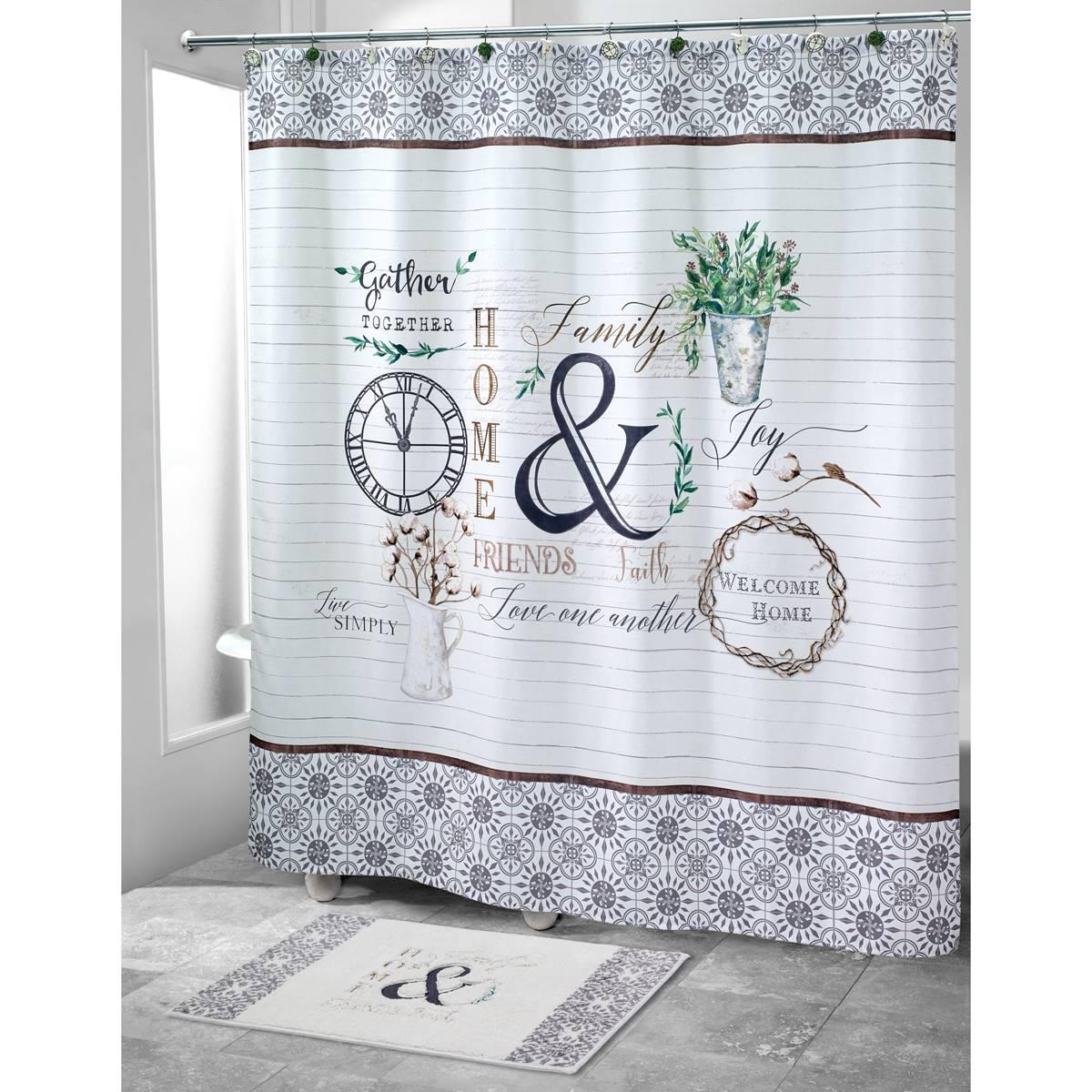 Bring one of today´s most popular decorating motifs to your home. The Avanti Modern Farmhouse Shower Curtain is adorned with icons, words, and phrases for a unique look. It is crafted in great detail in hand-painted resin.
