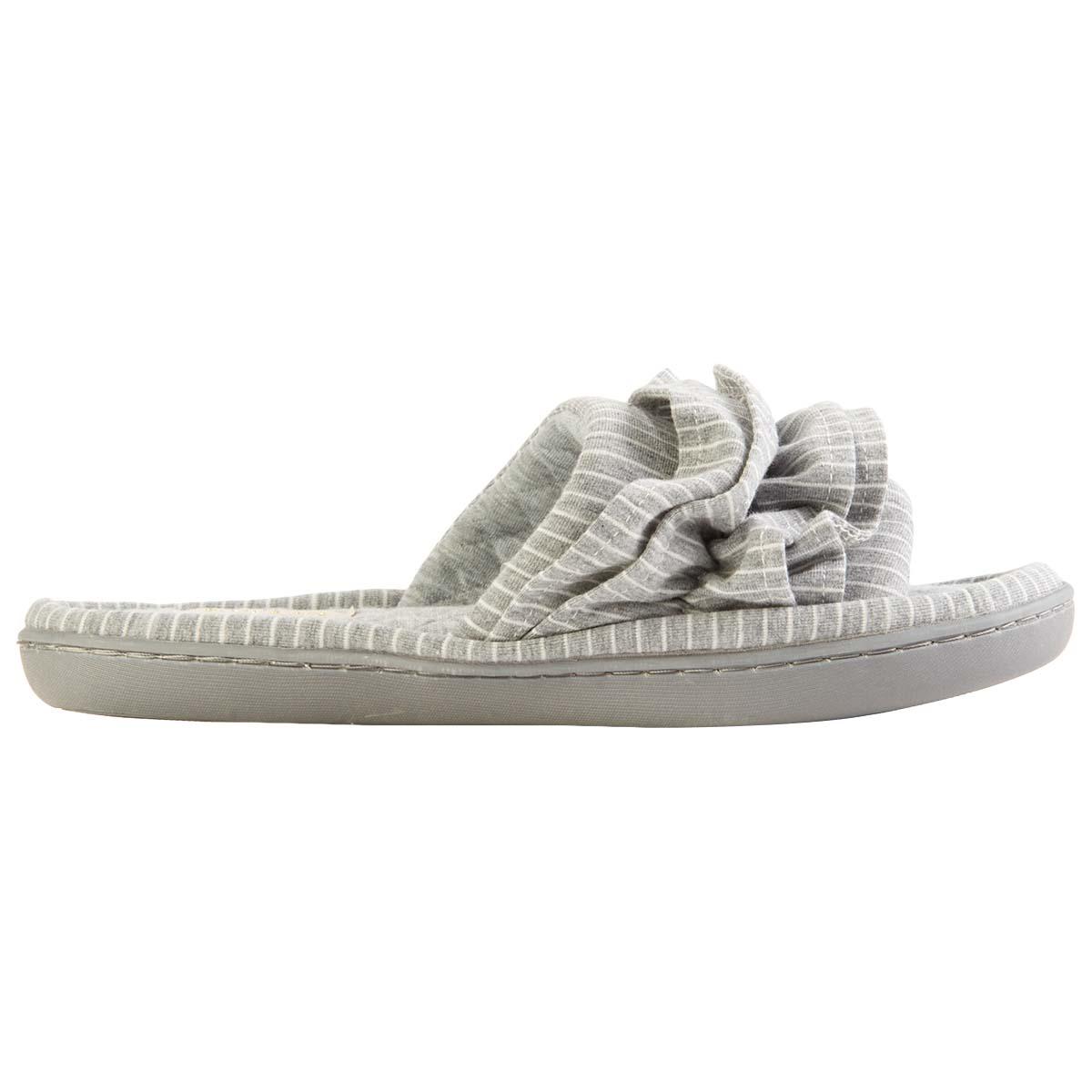 Relax in comfort and style with these Womens Kooba open toe scuff slide slippers. Features a memory foam footbed, stripes, and ruffles.