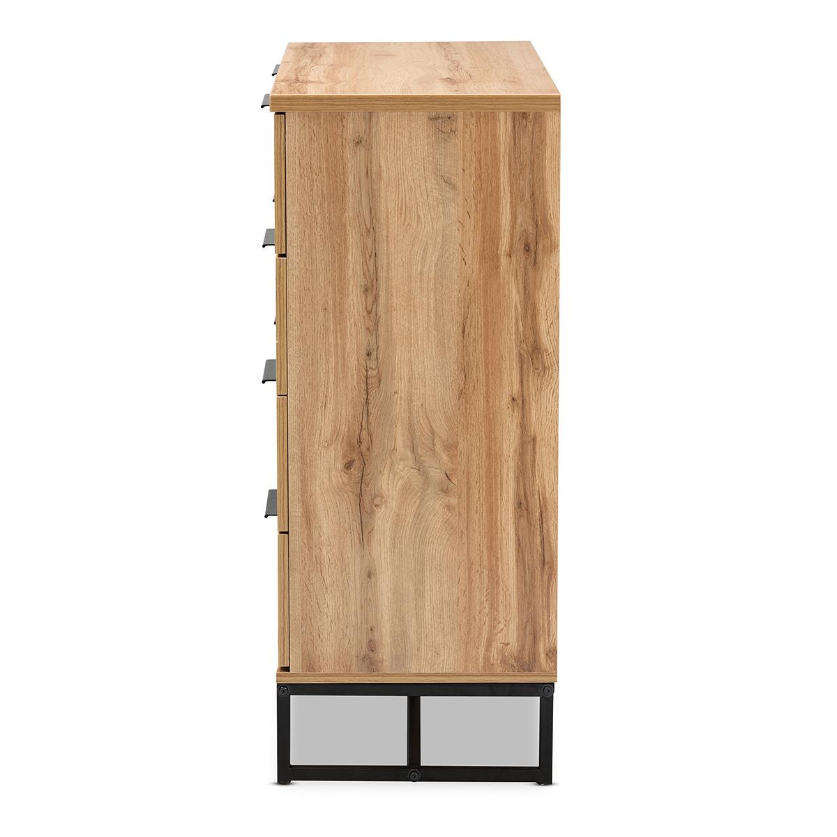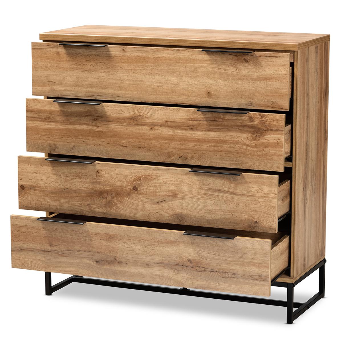 With its clean lines and natural wood tones, the Baxton Studio Reid dresser is a stylish addition to any space. This wood dresser pairs a natural oak finish with black metal for a cool, contemporary look. Four drawers provide ample space to store clothing, undergarments, and more. Long black metal handles add a chic, minimalist touch.