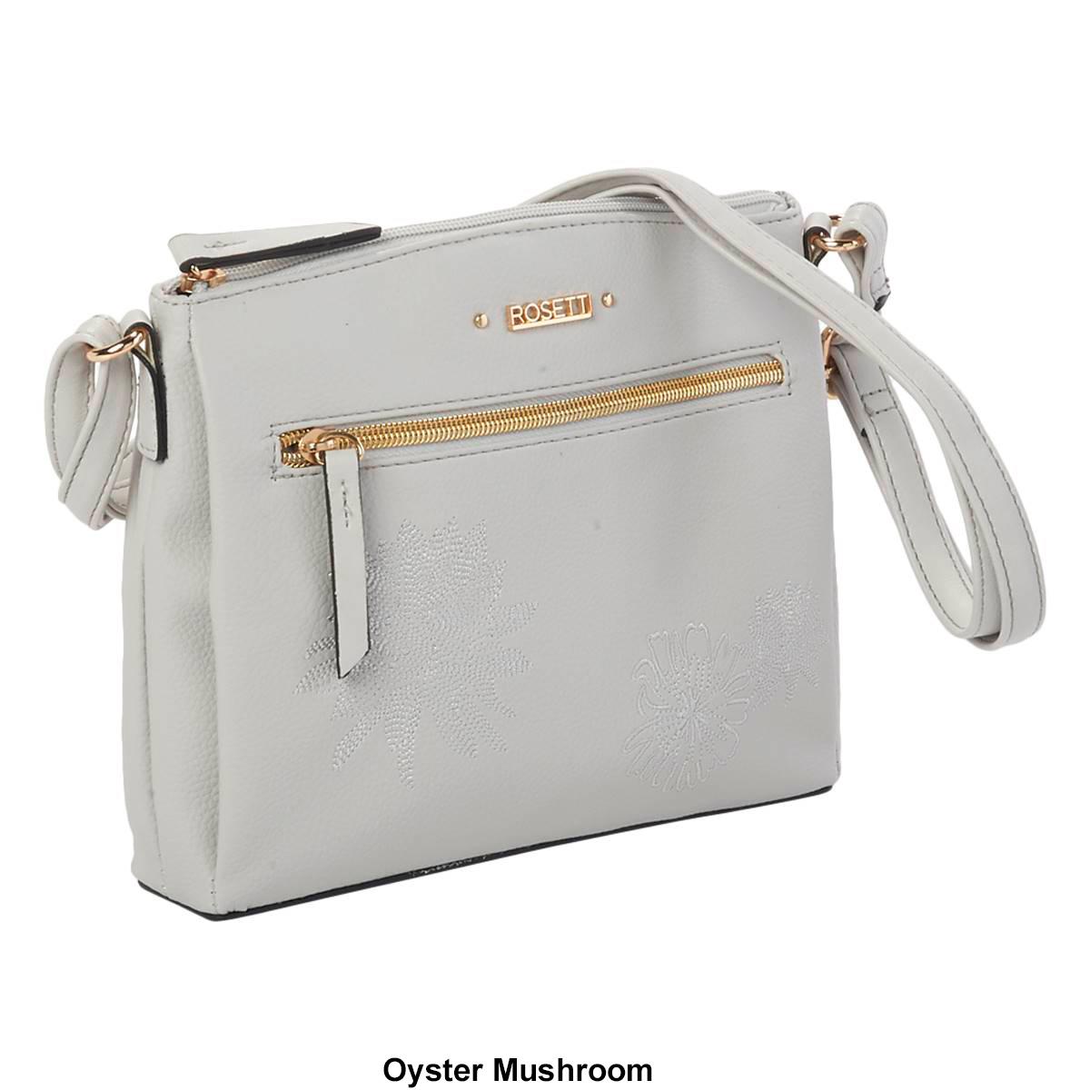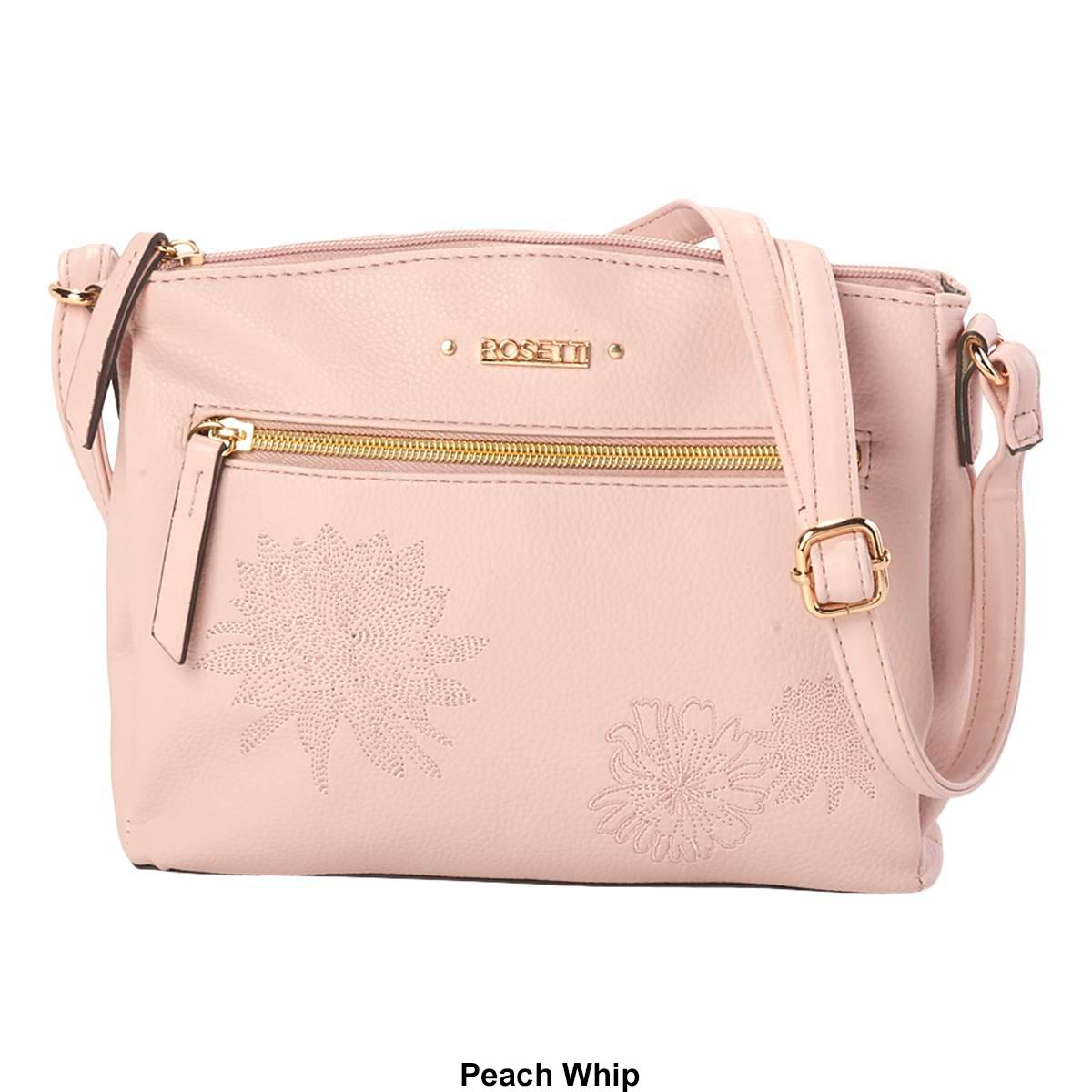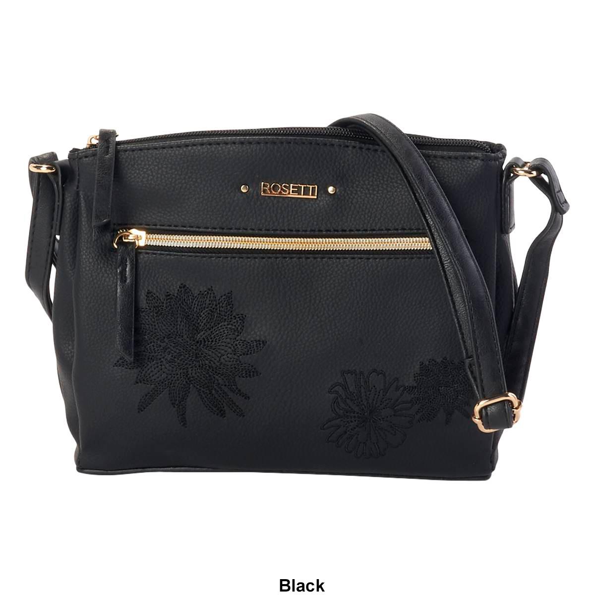 Description Tote your essentials around in hands free style with this Rosetti® Fedra crossbody. With pretty floral embroidery, this solid bag includes an adjustable strap, top...