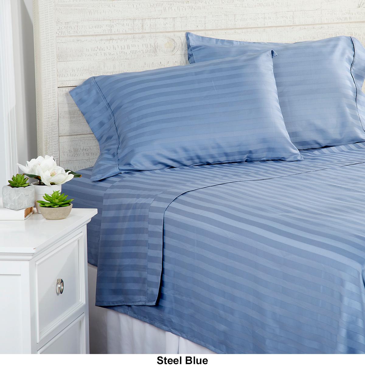 The Imperial Living™ Dobby stripe 400 thread count extra deep sheet set is the ultimate in bedding luxury, made from the finest quality 100% cotton yarn, giving the finished product more strength and luster. The set includes a flat sheet, fitted sheet, and pillowcases. The fully elastic fitted sheet accommodates most mattresses from 8 to 21 inches deep.