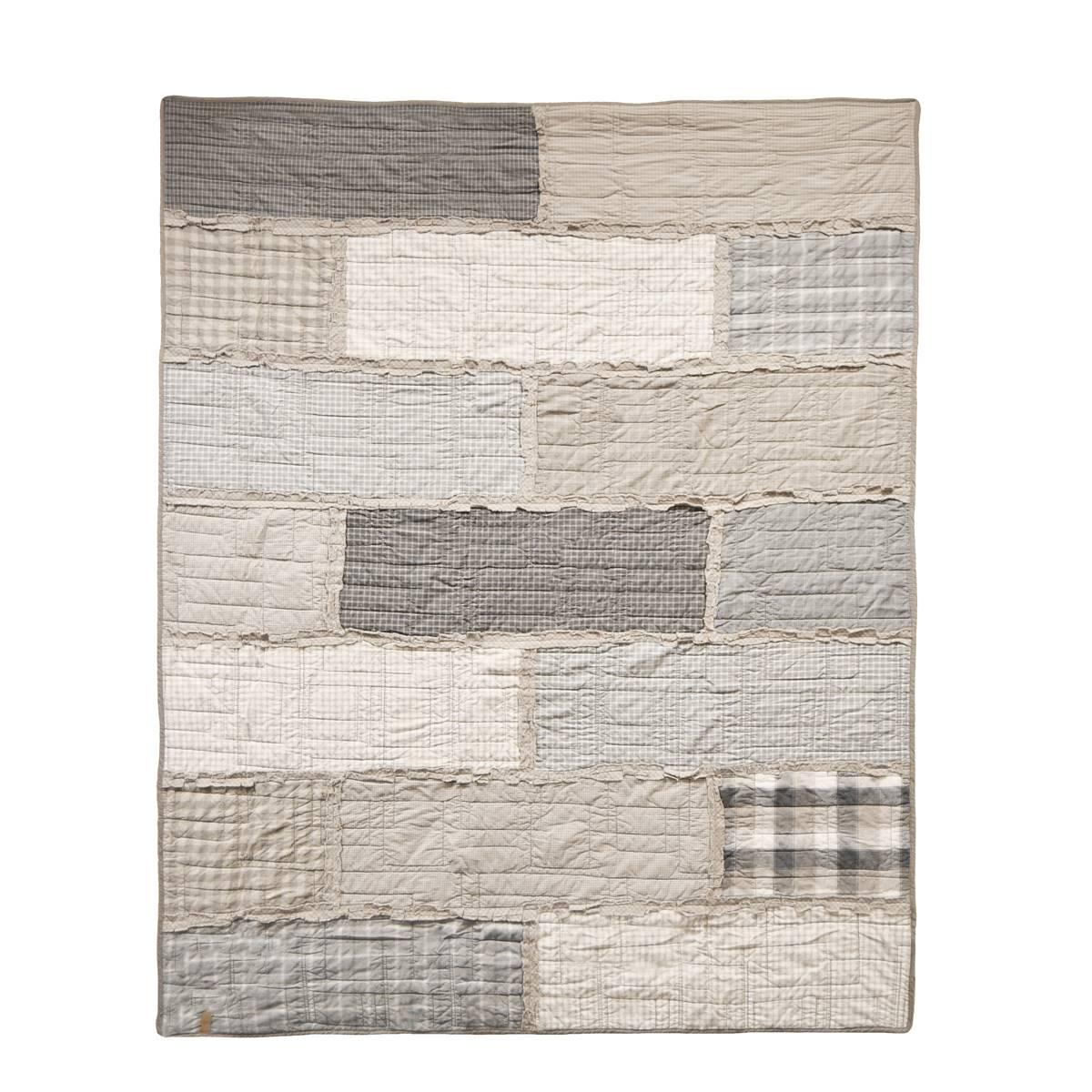 Stay comfy with this Donna Sharp smoky cobblestone cotton throw blanket. Features a series of soft, woven plaids crafted using dense, thick cotton for strength and durability in fresh neutral colors. The fabrics are arranged in large offset panels with geometric quilting and ragged edges for a contemporary touch.