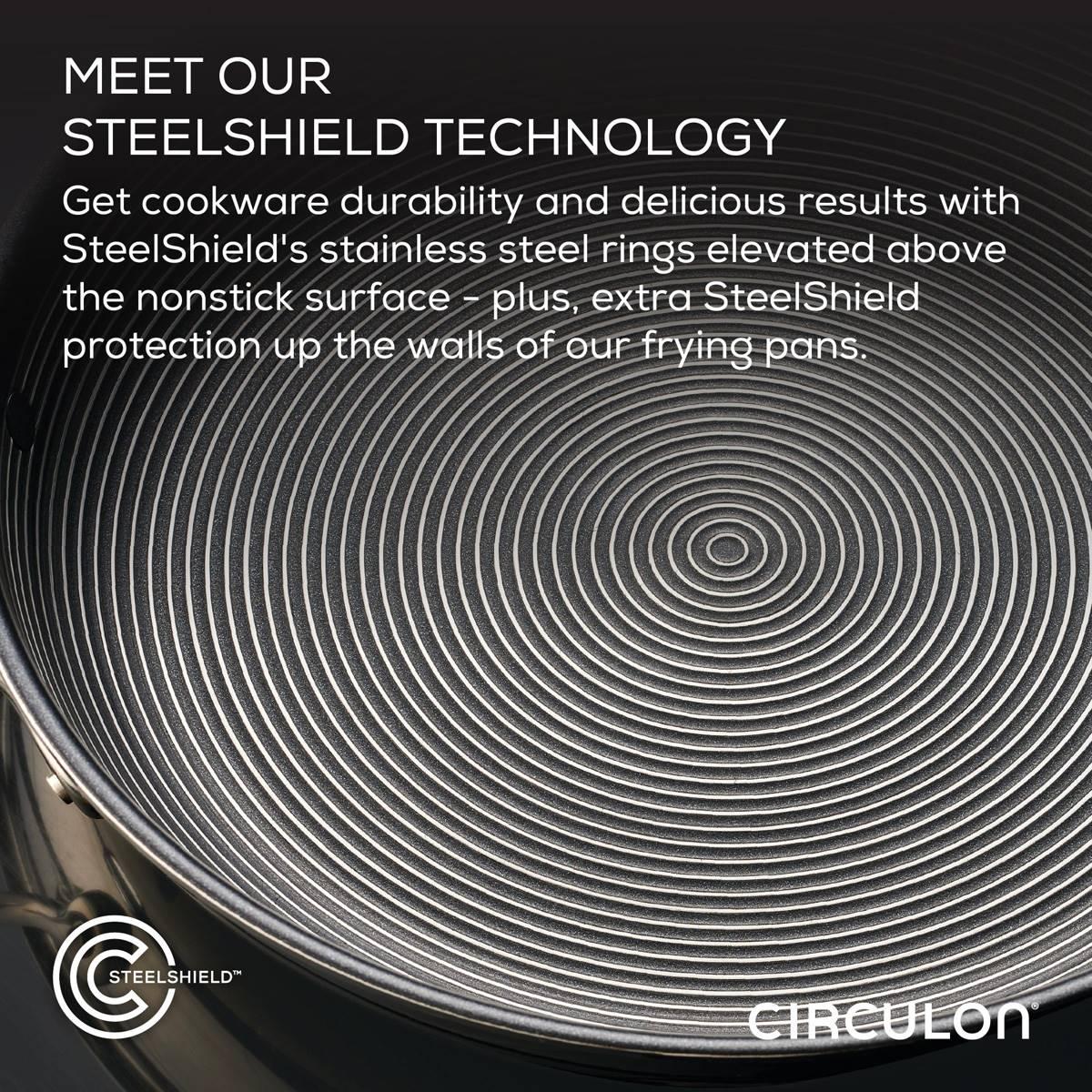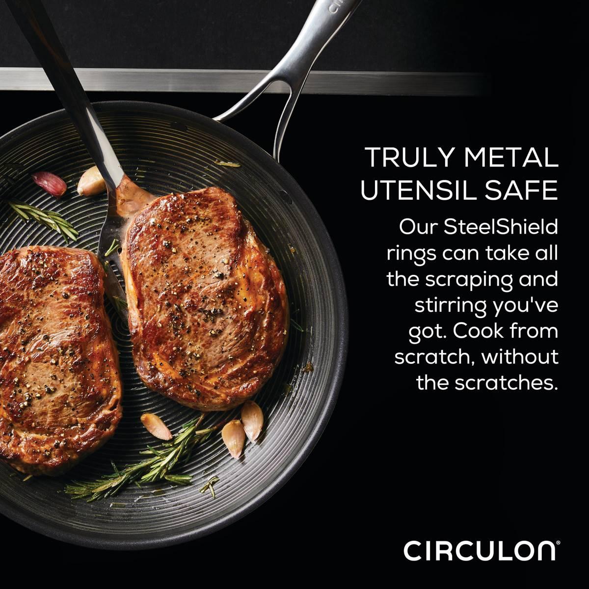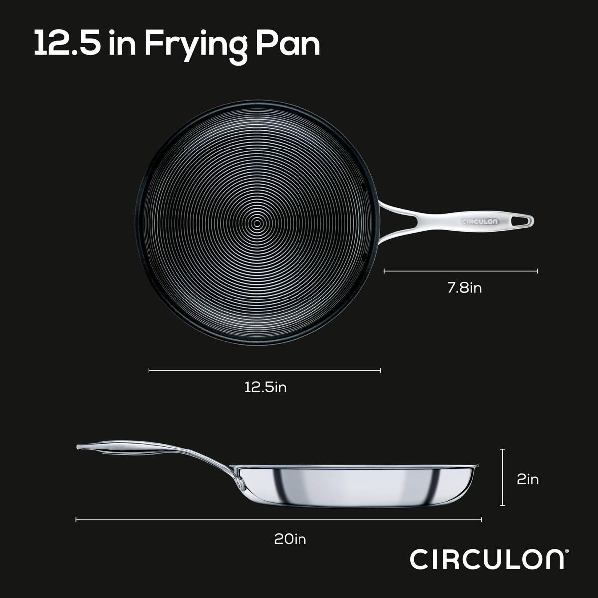 Description This Circulon® 12.5-inch Stainless Steel Frying Pan combines the beauty and durability of stainless steel with the ease and convenience of nonstick. Dishwasher safe...