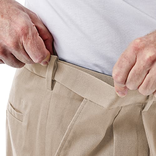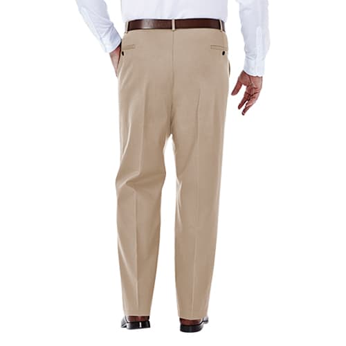 Eliminate the need to iron with these Khakis. The Haggar® Premium No Iron Khaki looks as great as it feels. Stretchable cotton-blend fabric, hidden expandable waistband and permanent crease will keep you looking sharp and comfortable. The waistband stretches up to 3" for all-day comfort and mobility in your mid-section. The Classic fit features a straight leg that is slightly roomy.