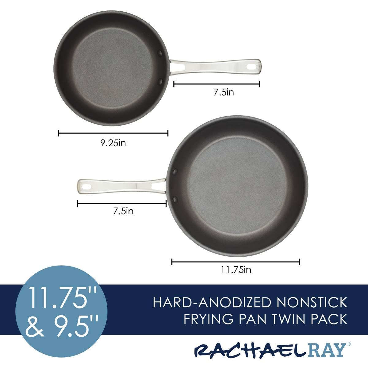 - Set includes: 9.5-inch and 11.75-inch hard anodized nonstick frying pans