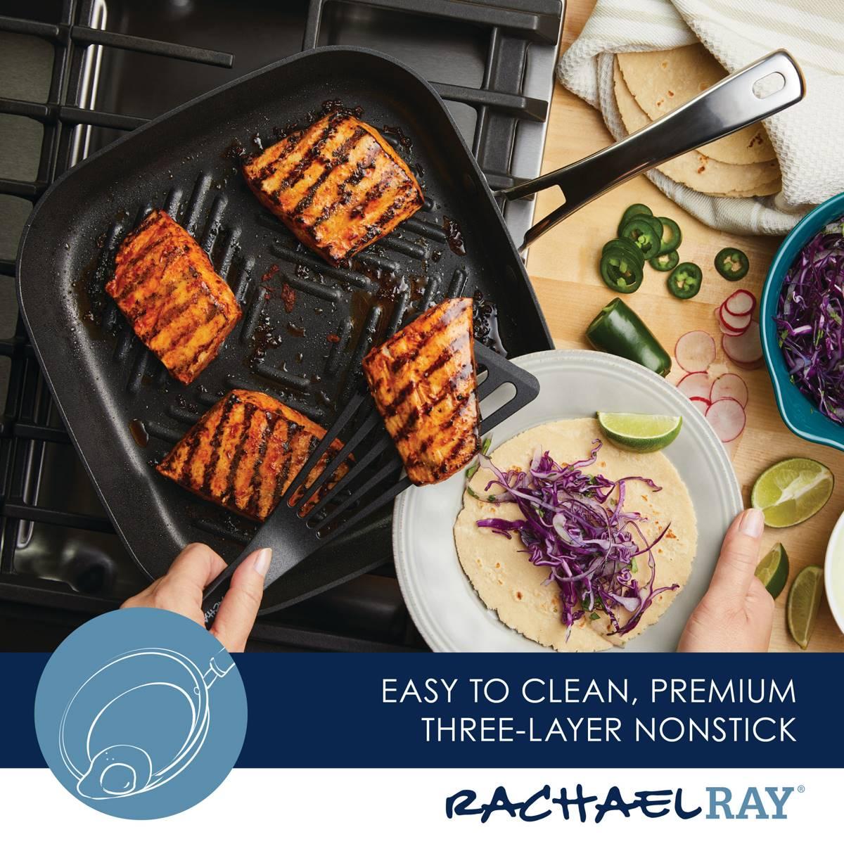 Description Level up your kitchen with the Rachael Ray Cook + Create 11in. Hard-Anodized Nonstick Deep Grill Pan. This fun and super-functional fry pan is crafted from thicker...