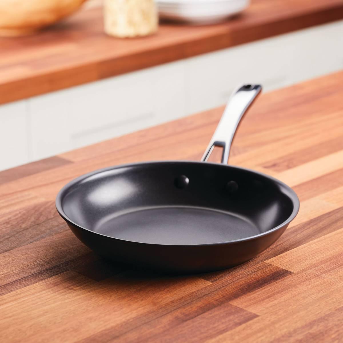 Description Level up your kitchen with the Rachael Ray Cook + Create 10-inch Hard-Anodized Nonstick Frying Pan. This fun and super-functional fry pan is crafted from thicker...
