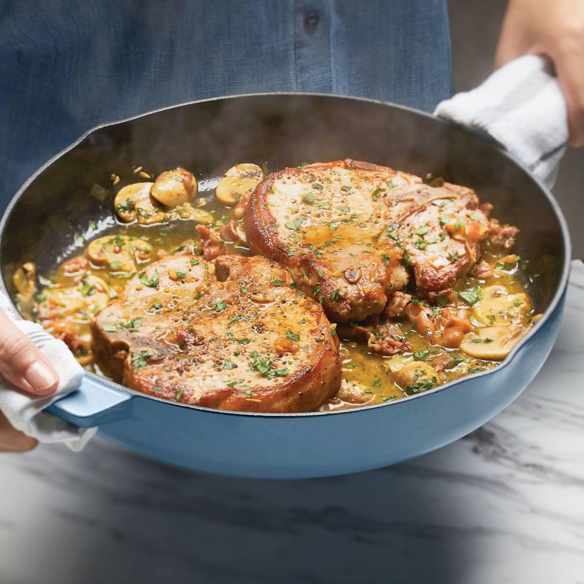 Experience all the benefits of cast iron without the maintenance when crafting with the KitchenAid® 12-inch Enameled Cast Iron Skillet. Oven safe to 500°F, this enameled cast-iron skillet is ready for any recipe a chef can conjure up.