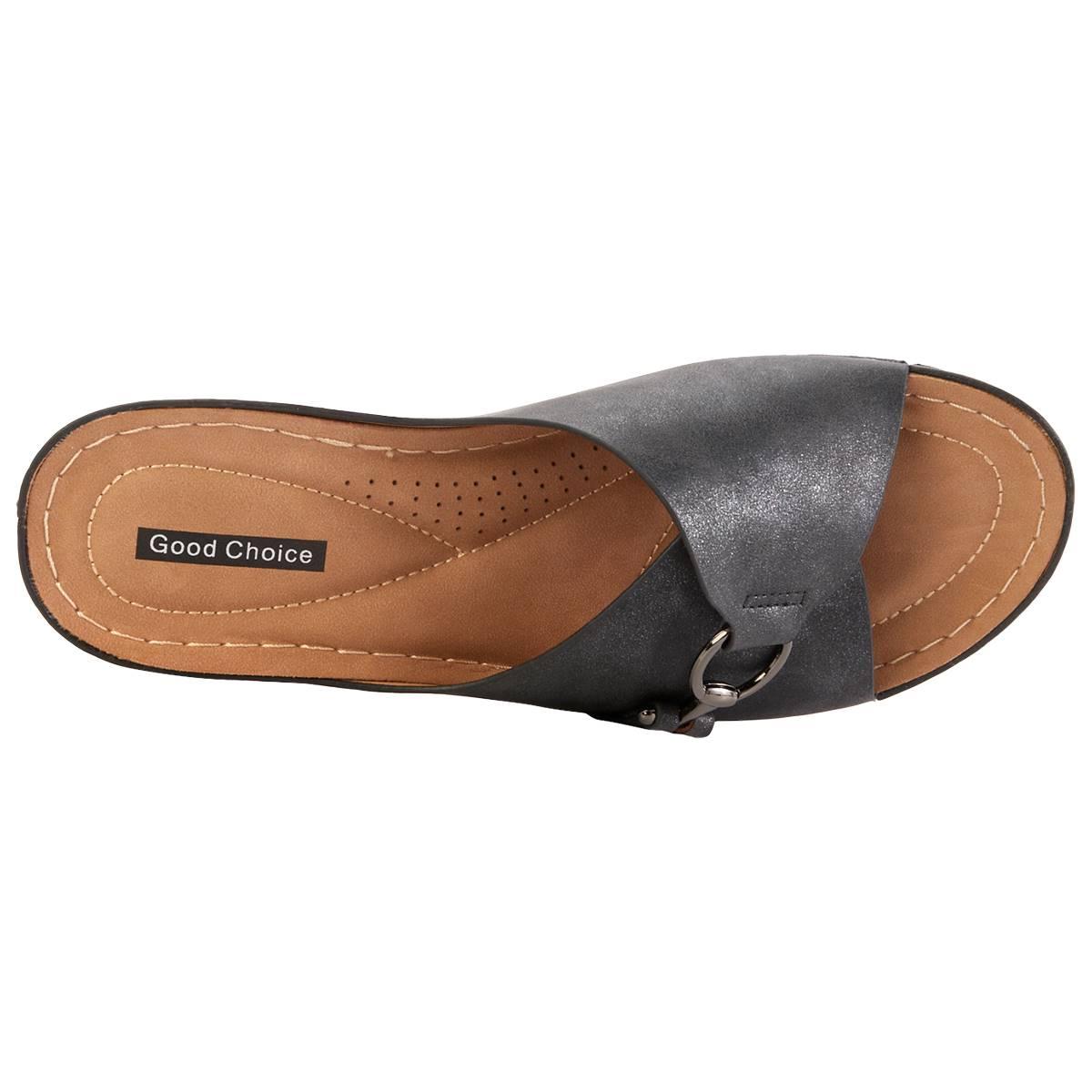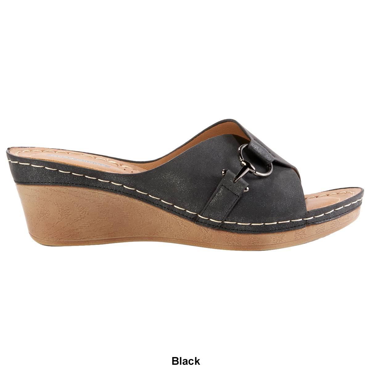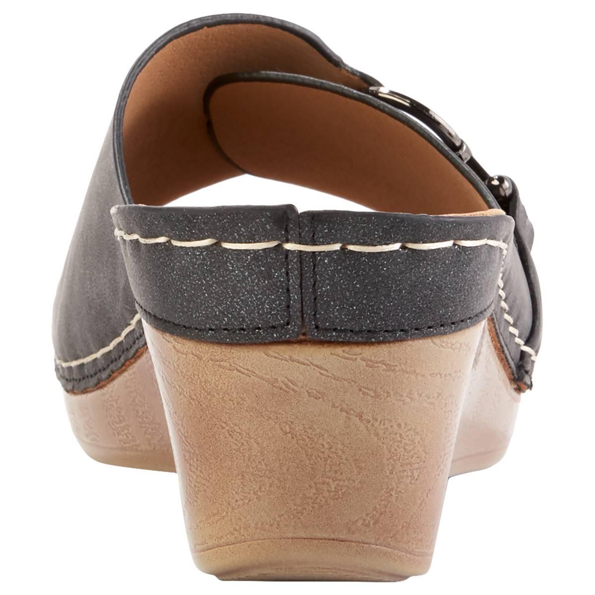 Description Heel Height: 2.5"Slip-onRound open toeLightly cushioned footbedRing hardware detail Care: Spot Clean Material: Man Made Item #: 696374 Pricing Disclosure