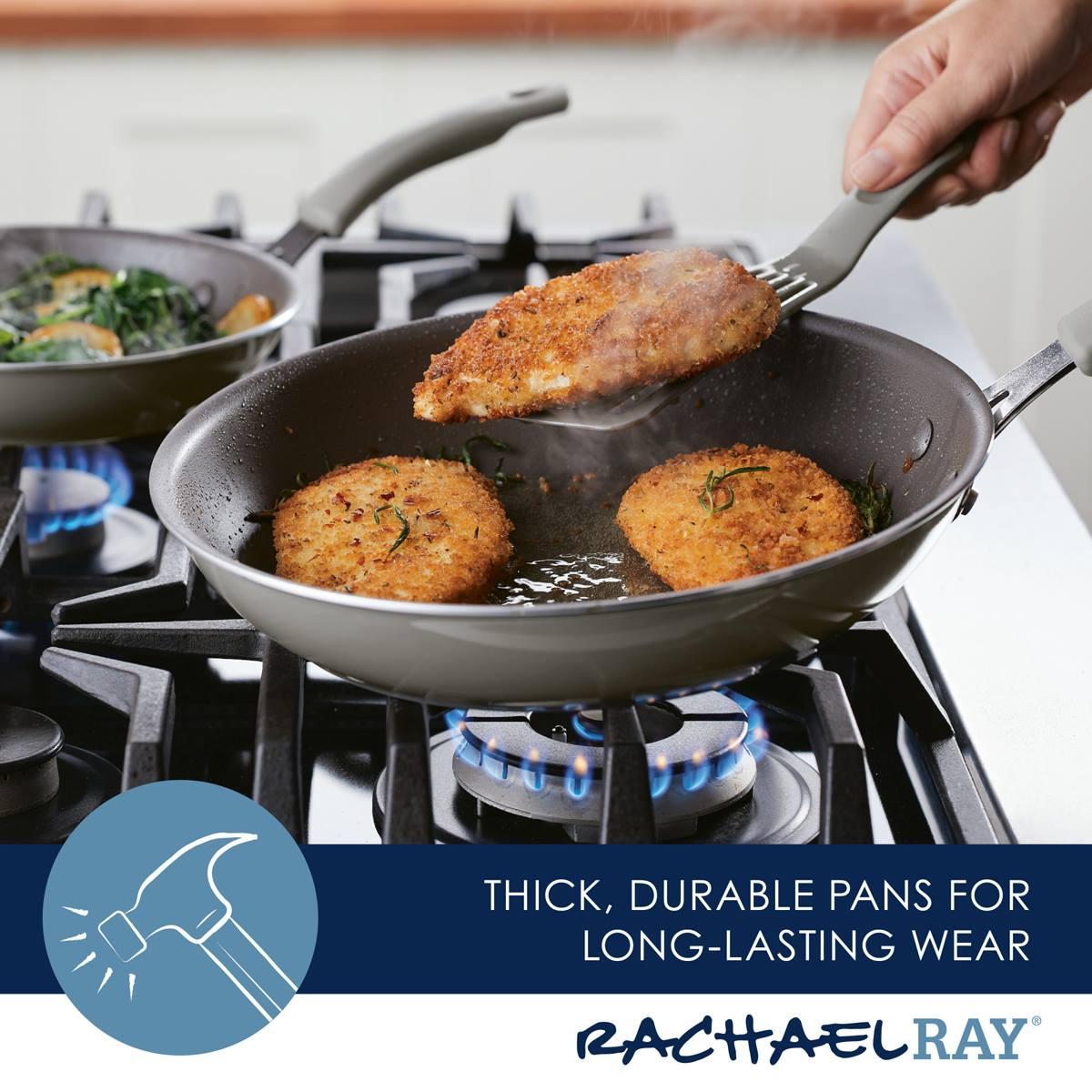 Description Level up your kitchen with this Rachael Ray Cook + Create 2-Piece Aluminum Nonstick Frying Pan Set. This practical 9.5-inch and 11.75-inch frying pans are crafted...