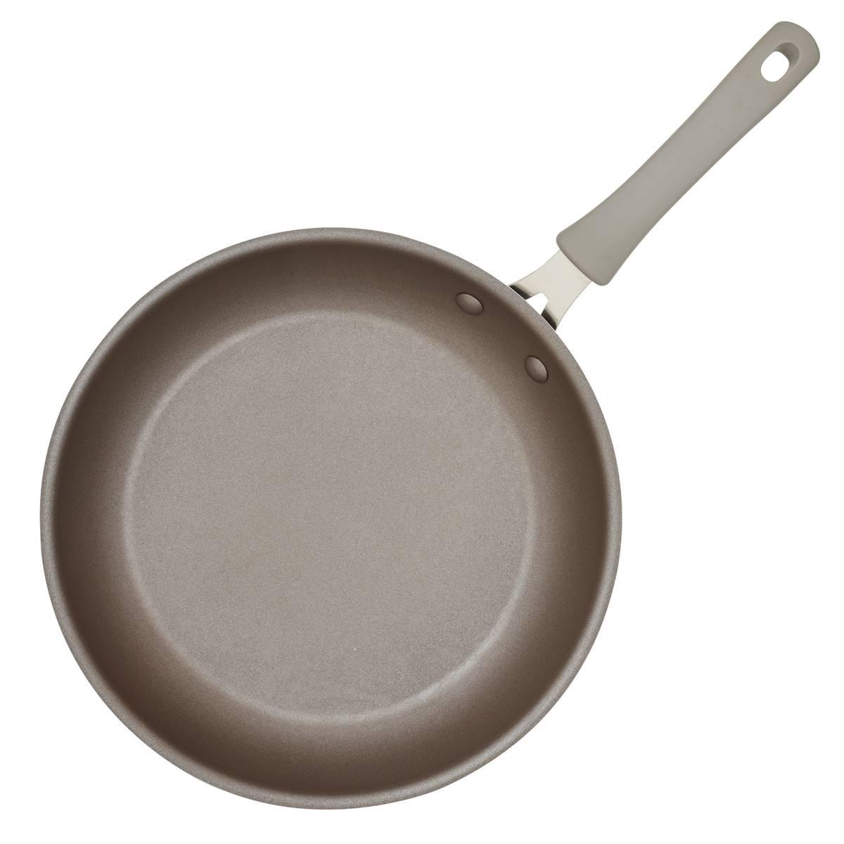 Level up your kitchen with this Rachael Ray Cook + Create 2-Piece Aluminum Nonstick Frying Pan Set. This practical 9.5-inch and 11.75-inch frying pans are crafted from thicker gauge aluminum for luxe and sturdy feel and reliable stovetop performance that heats up quickly and evenly. The skillets also feature nonstick on the inside rivets, for super-smooth stirring and easy-clean cooking surfaces that don´t get food build-up around the handle attachments.