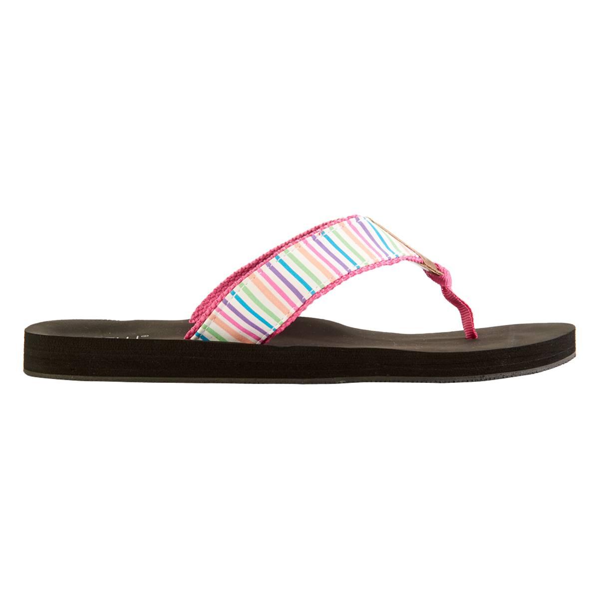 The Womens Capelli New York striped Lamy flip flops are ready for any summer day. Features faux leather and webbing toe post on EVA sock and TRP outsole.
