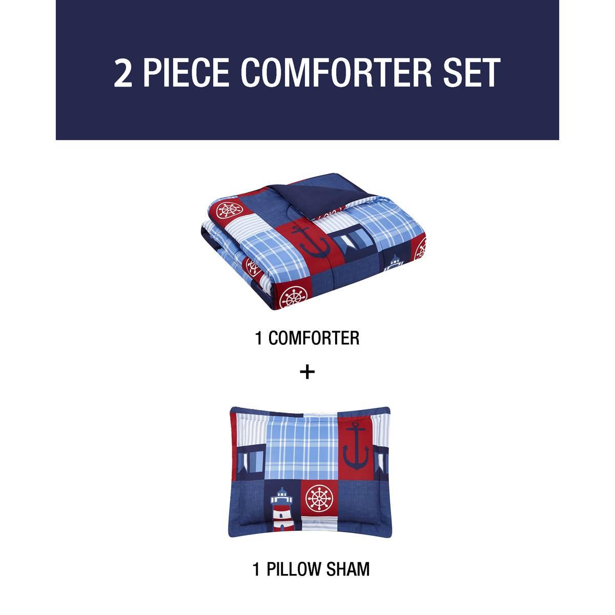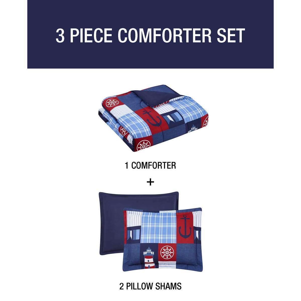 Description The Home Retreat nautical patch ultra-soft reversible comforter bedding set will create a coastal oasis in any bedroom. The printed patchwork design features classic...