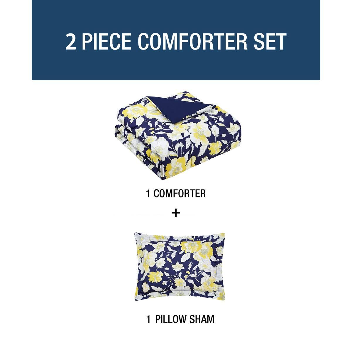 • Twin set includes: (1) 66" x 86" Comforter, (1) 20" x 26" Standard Sham
