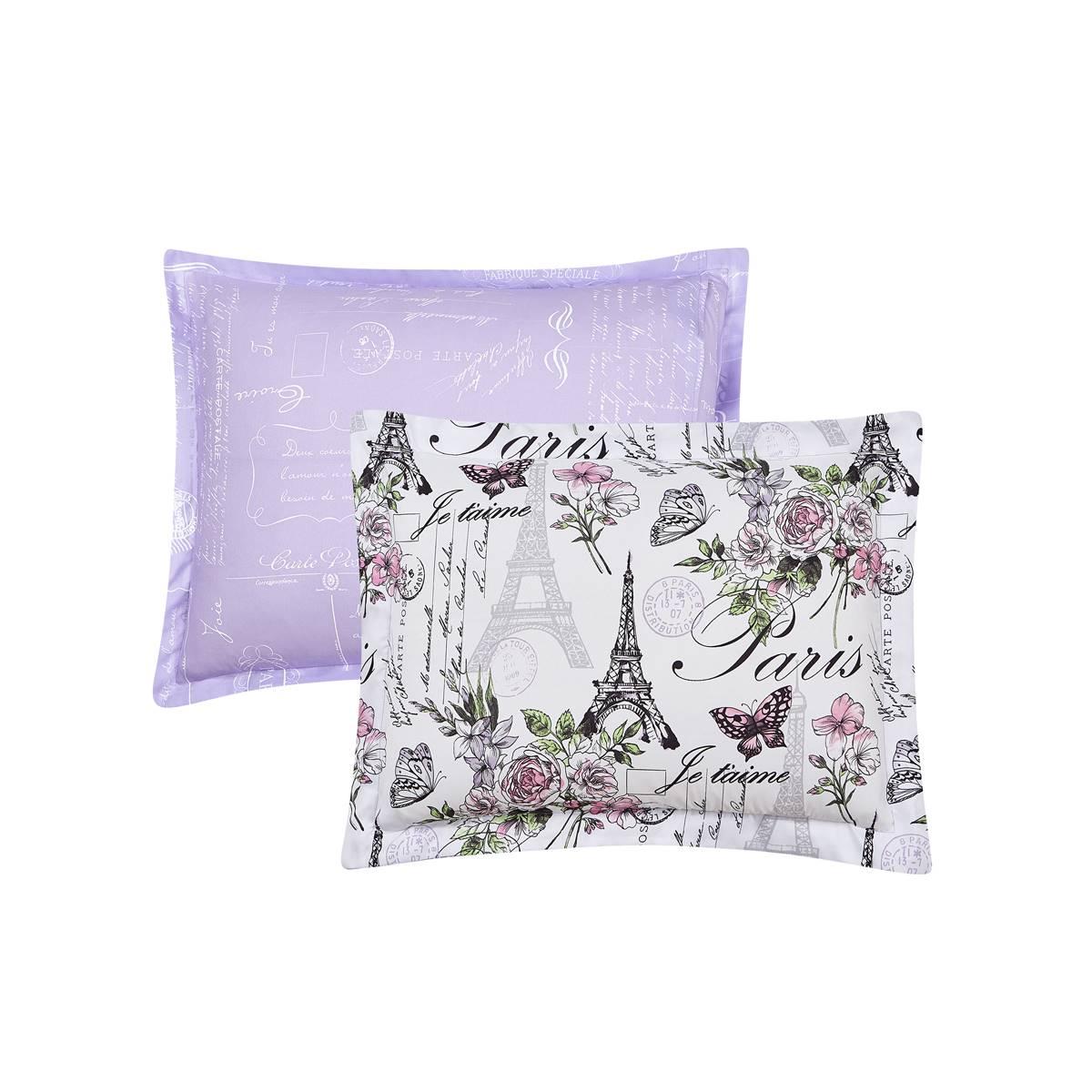 Description Travel to the city of lights with this Cedar Court Paris floral reversible comforter dedding set. Eiffel towers, roses, botanical leaves, postcards, and script French...