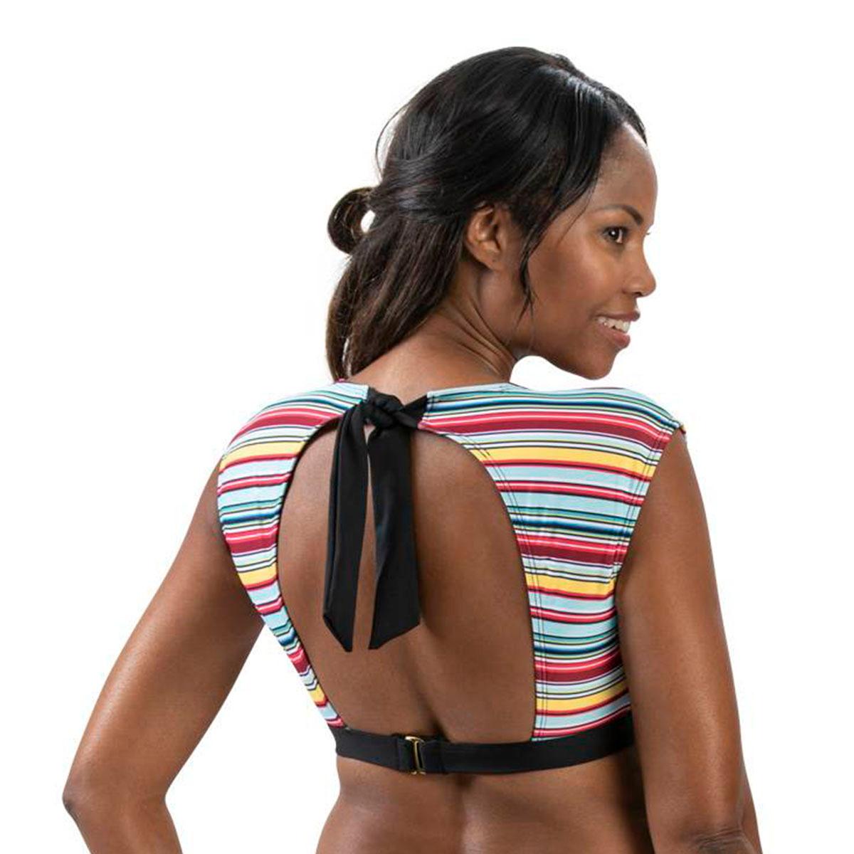 Unique and oh-so-fun, this Womens Dolfin® Aquashape sunset surplice front bikini swim top is the ultimate! With cap sleeves and a surplice front, this tie-back bikini top is ready to have some fun!Swim bottoms not included.