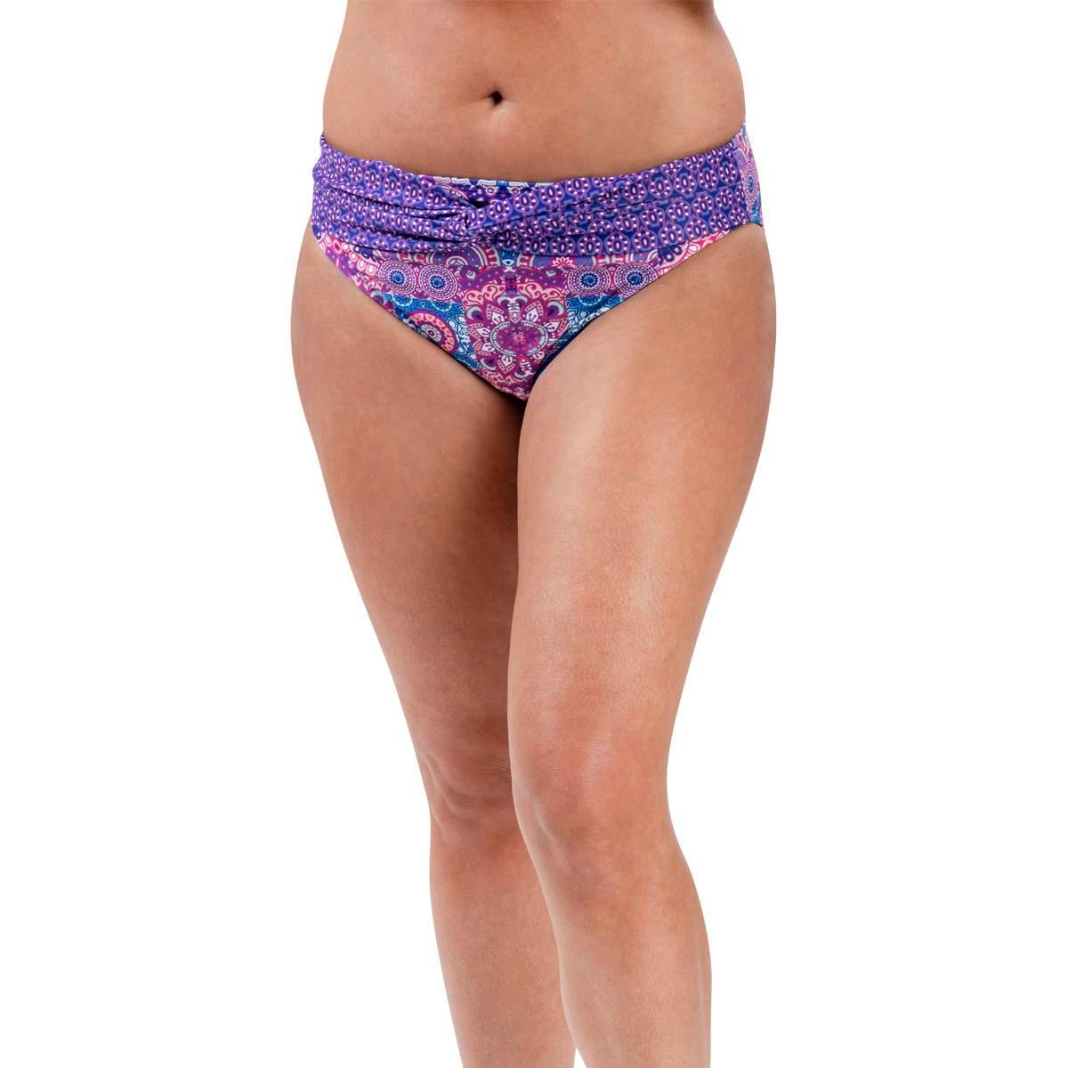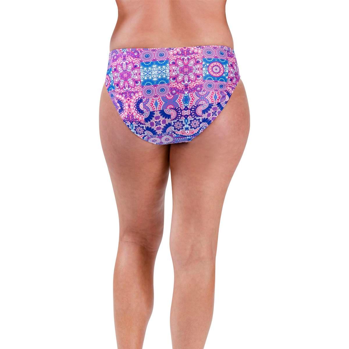 These Womens Dolfin® Aquashape contemporary patchwork brief swim bottoms are flattering and comfortable. This brief is mid-rise and features a twist-front loop waistband for a little extra pizzazz!