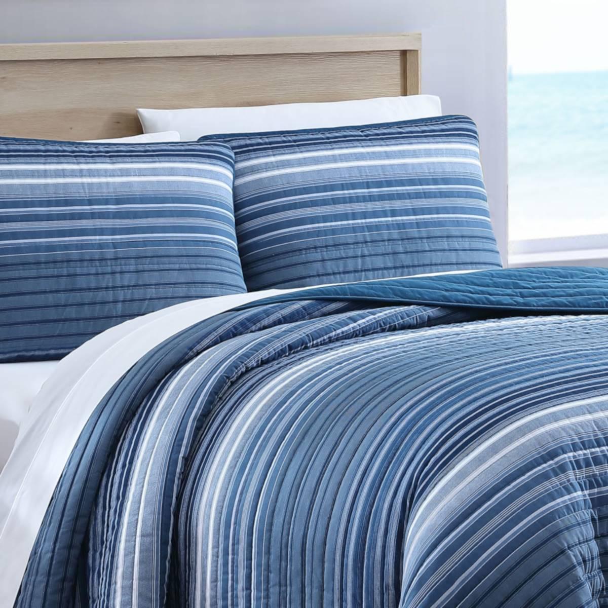 Description This Nautica Coveside 136 Thread Count Reversible Quilt Set features a seascape-inspired stripe combination that will keep you cool in the breezy summer months. Fully...