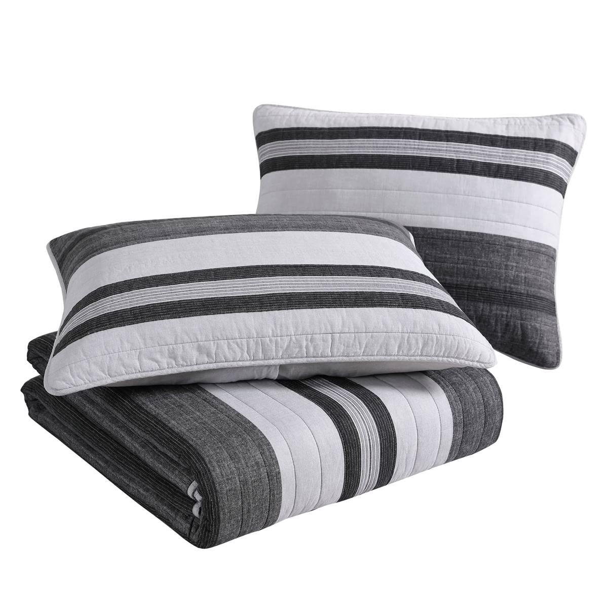 Description Show off your stripes with this Nautica Ardmoore 136 Thread Count Reversible Quilt Set. The quilt is fully reversible, featuring a light printed texture on the...