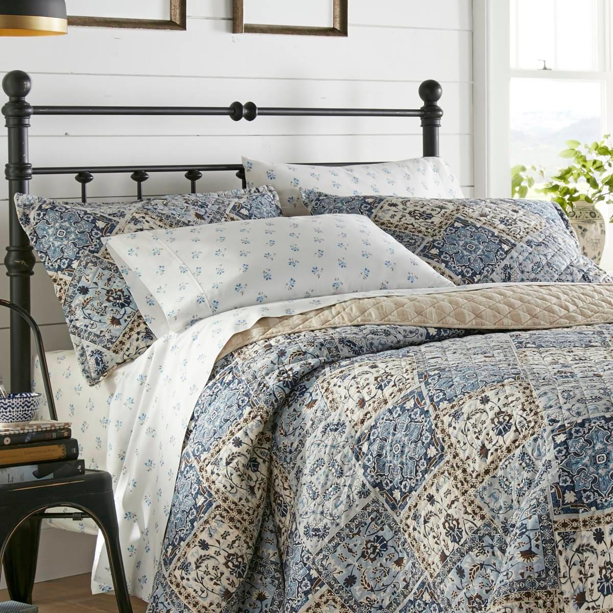 This Stone Cottage Abby 136 Thread Count Reversible Quilt Set features a patchwork-inspired print in a farmhouse casual style. It is lightweight yet warm and will get softer and more comfortable with each washing.