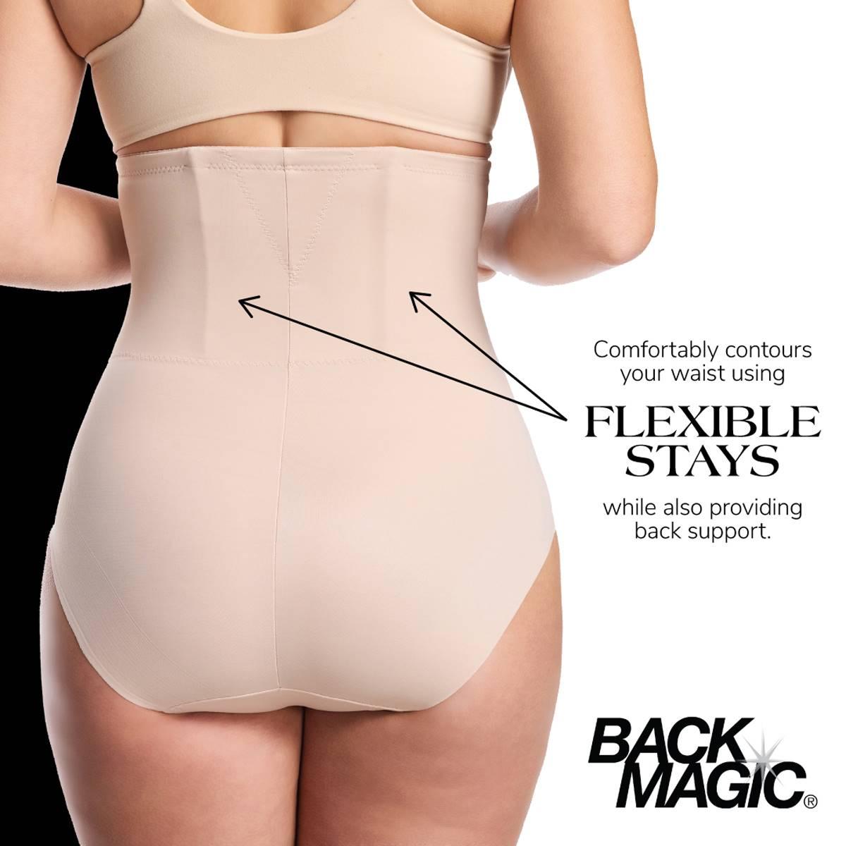 This Womens Naomi & Nicole back magic high waist thigh slimmer provides a high waist firm control for extra smoothing. This slimmer has a no slip grip to fully support your back.