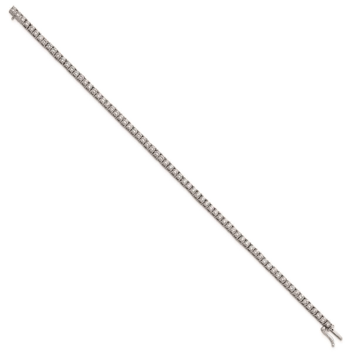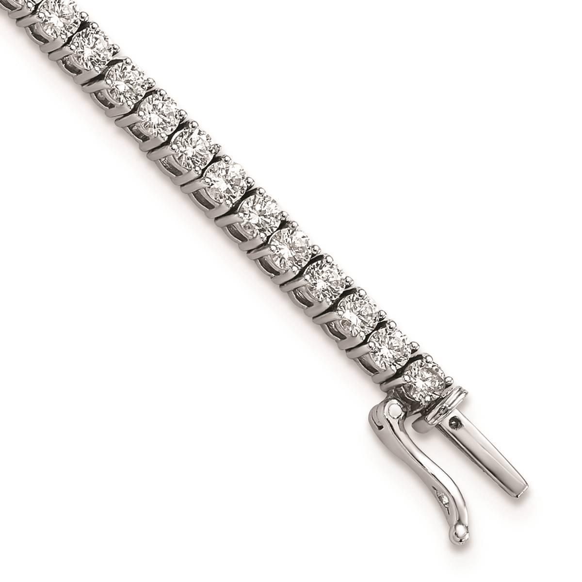 Complement any look with this 4.43ctw. sparkling lab-grown diamond tennis bracelet. Fashioned from 14kt. white gold this Pure Fire classy yet stylish bracelet features seventy-one round lab-grown diamonds throughout the length for an eye-catching allure. With a brilliant polished finish, this bracelet secures with a box catch closure.