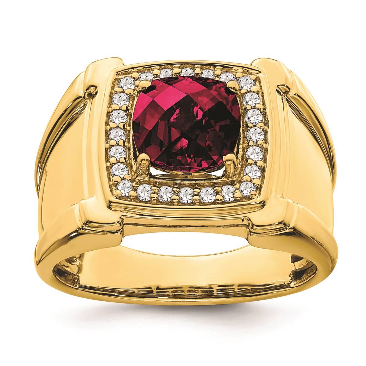 Description This Mens Pure Fire 14kt. yellow gold lab grown diamond ruby ring makes an ideal present for those who are celebrating a July birthday. An 8mm lab-created red ruby...